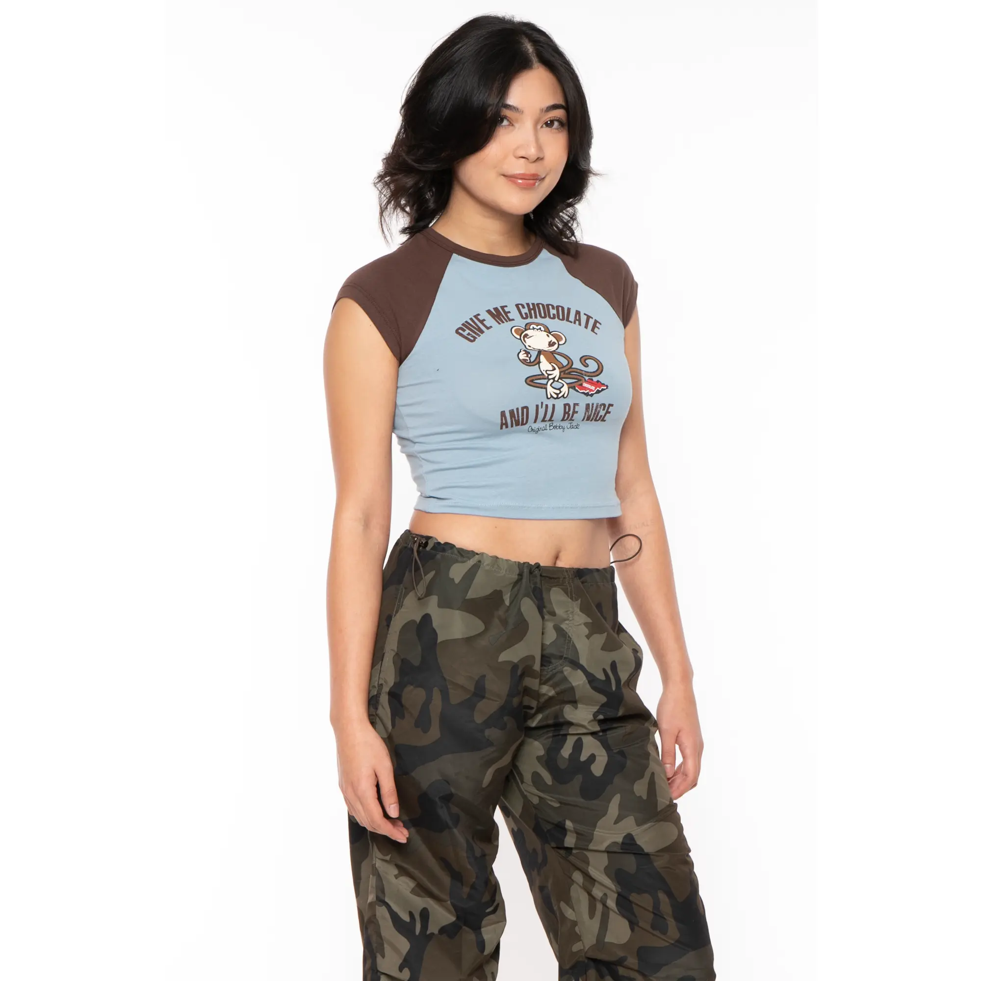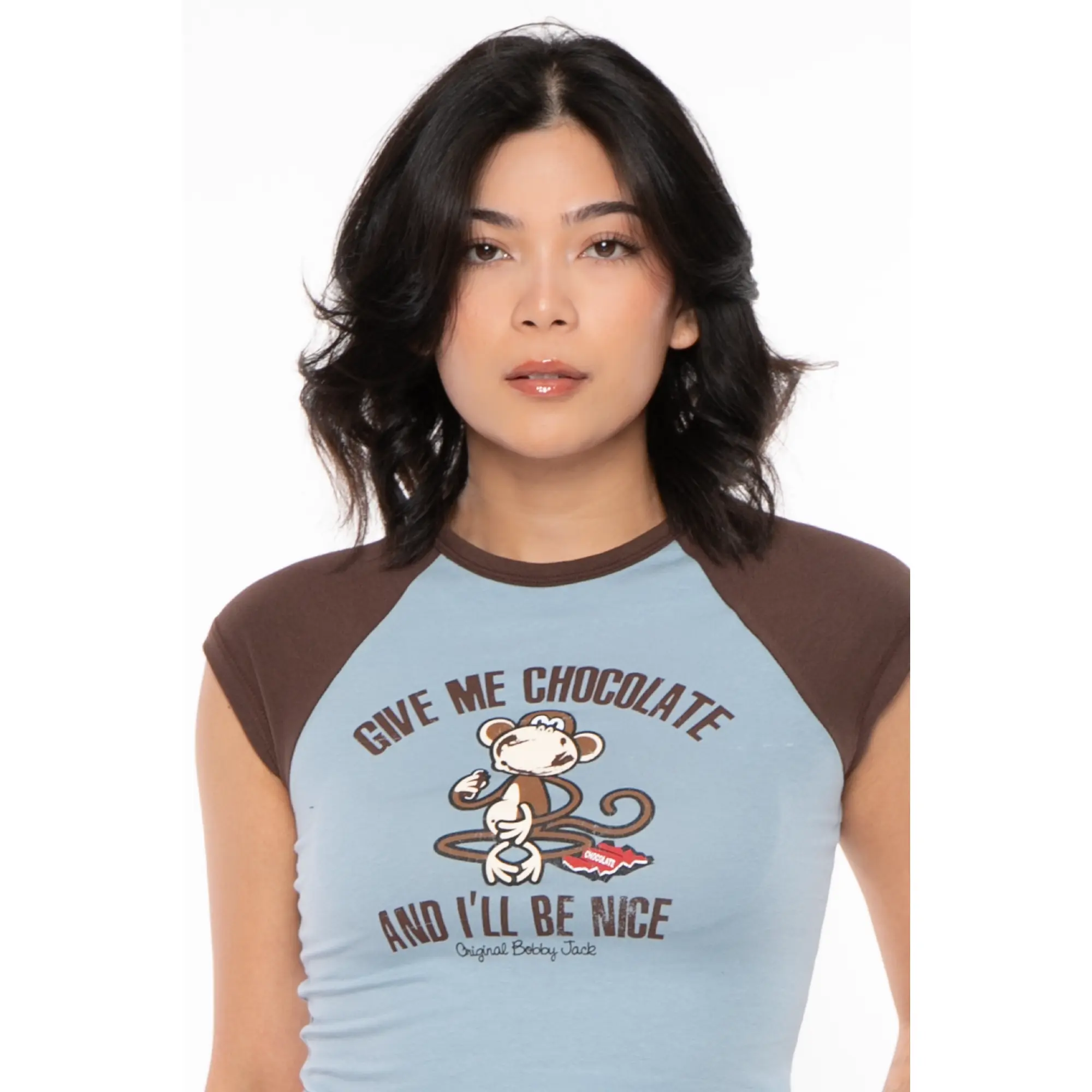 This authentic Bobby Jack piece brings nostalgic Y2K vibes to life with classic vintage artwork. Designed as a cropped raglan top, it features a flattering womens fit with great stretch and a soft, high-quality feel.