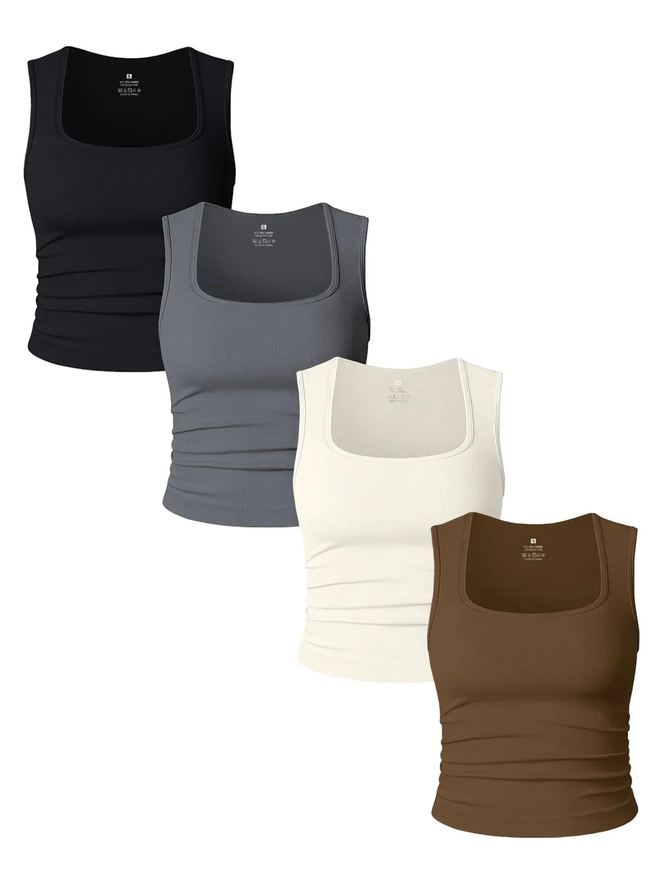 These crop top tanks are exactly what I was looking for. Very soft and stretchy ribbed material. I sized up for a longer fit.