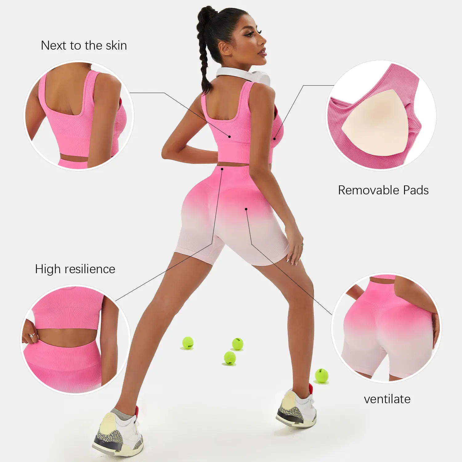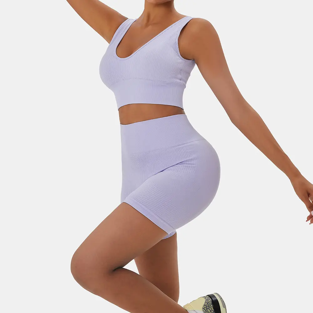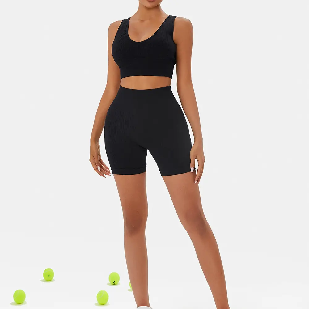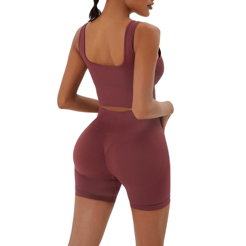 ·[Main Fabric] - This ribbed sports set made with lightweight,moisture-wicking power fabric.High elasticity, Comfortable, Breathable,Dry,The 4-way stretch to promote both compression and butt lifting, upper leg muscles and reduce muscle vibrations.