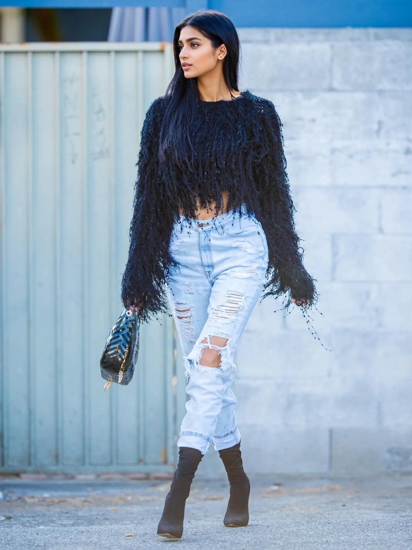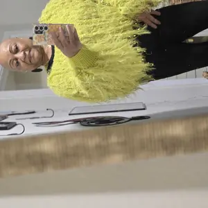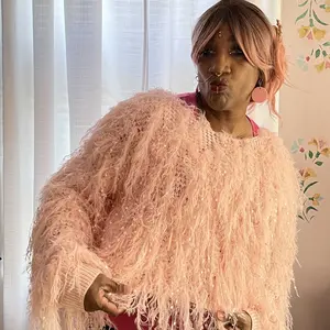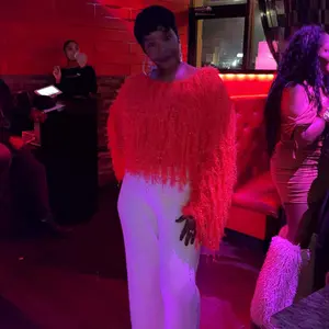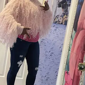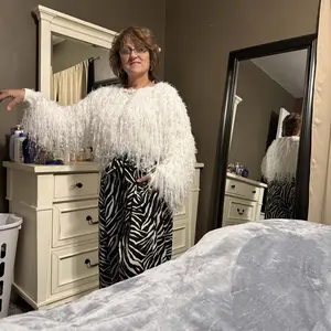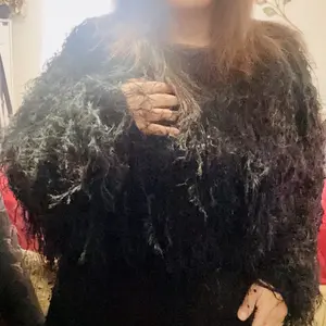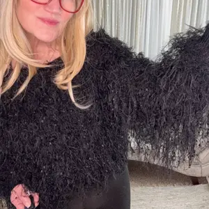 Artsy, hi-fashion, super cool! Some yarns sparkle, some are fuzzy. Shaggy but cropped. I sized up so it would be a bit more baggy. I need all the colors! Great dressed up with a mini, or paired with jeans