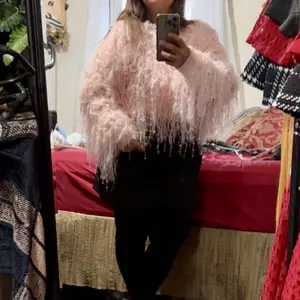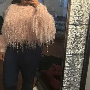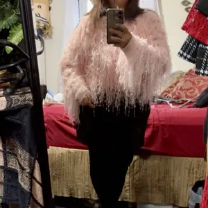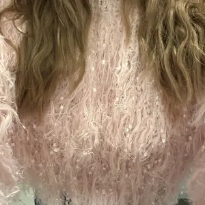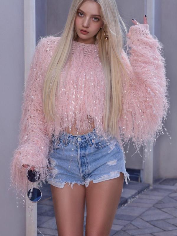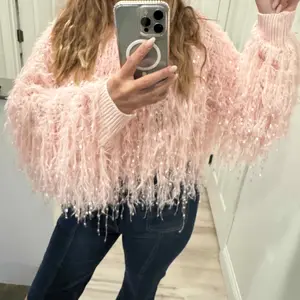 Definitely a crop sweater really nice interior that is crochet material style and the tassel actually looks like it has sequence built on it, but it doesn’t. It does sparkle a bit.
