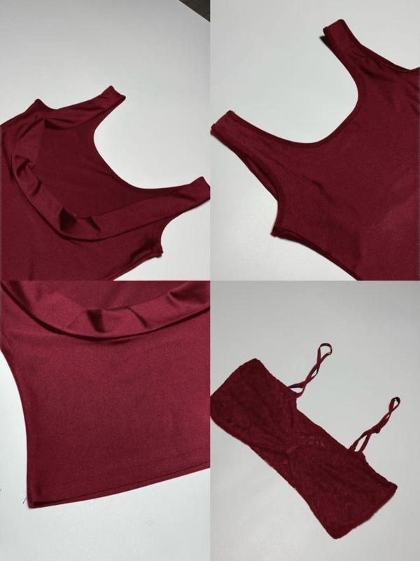 【Two-Piece Set】: Includes both a stylish crop tank and a lace bra, perfectly coordinated for a seamless summer look.