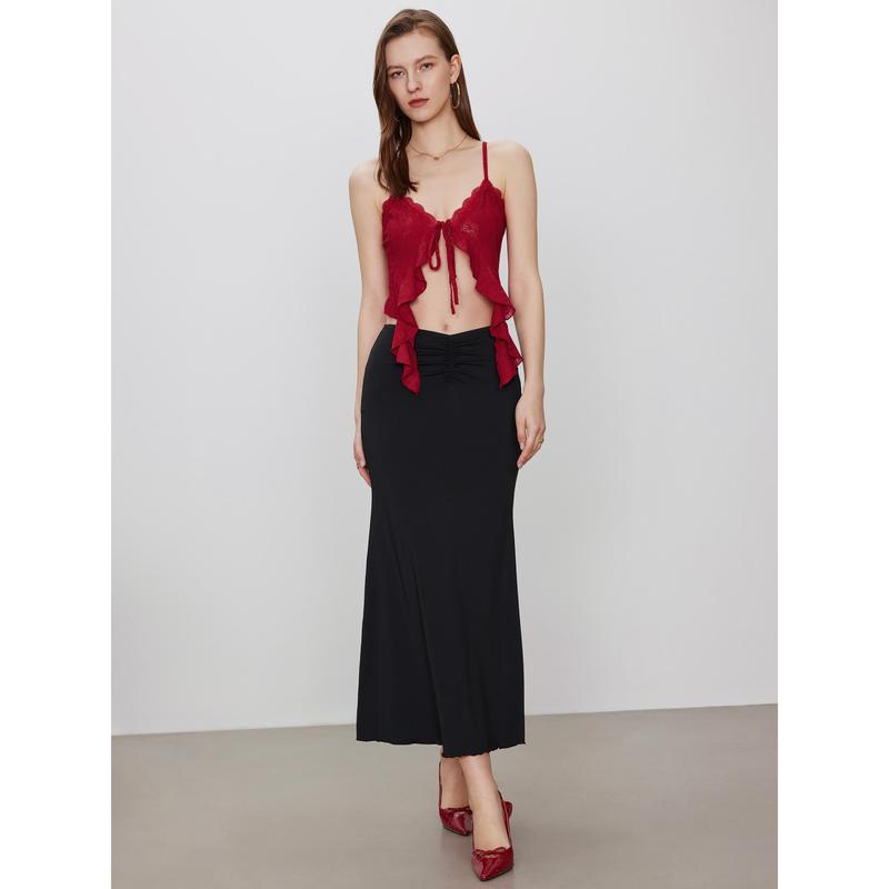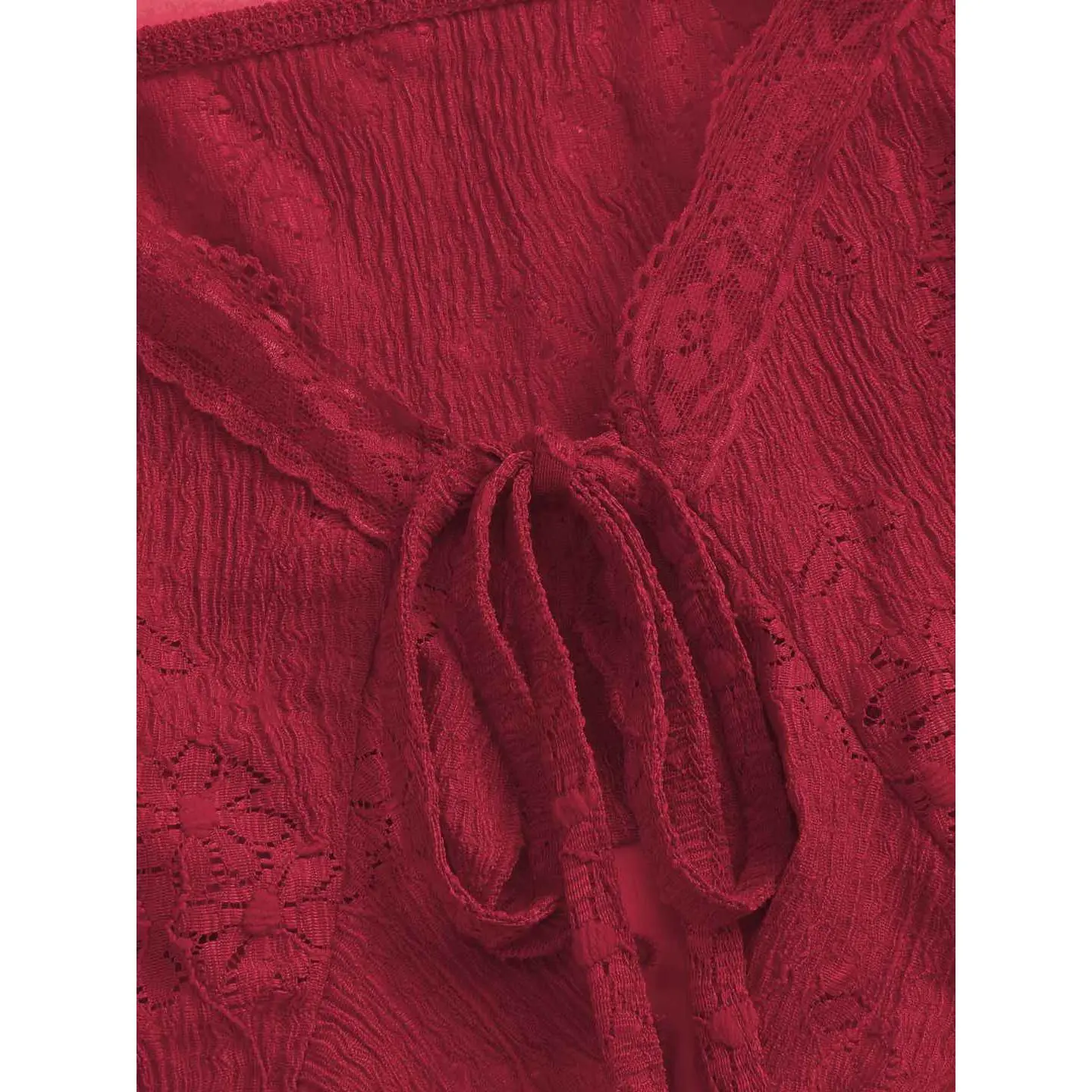 It’s a cute top but the lace is very see through and it runs big. I’m normally a medium so that’s what I got and I have to tie it extra tight to get any sort of support