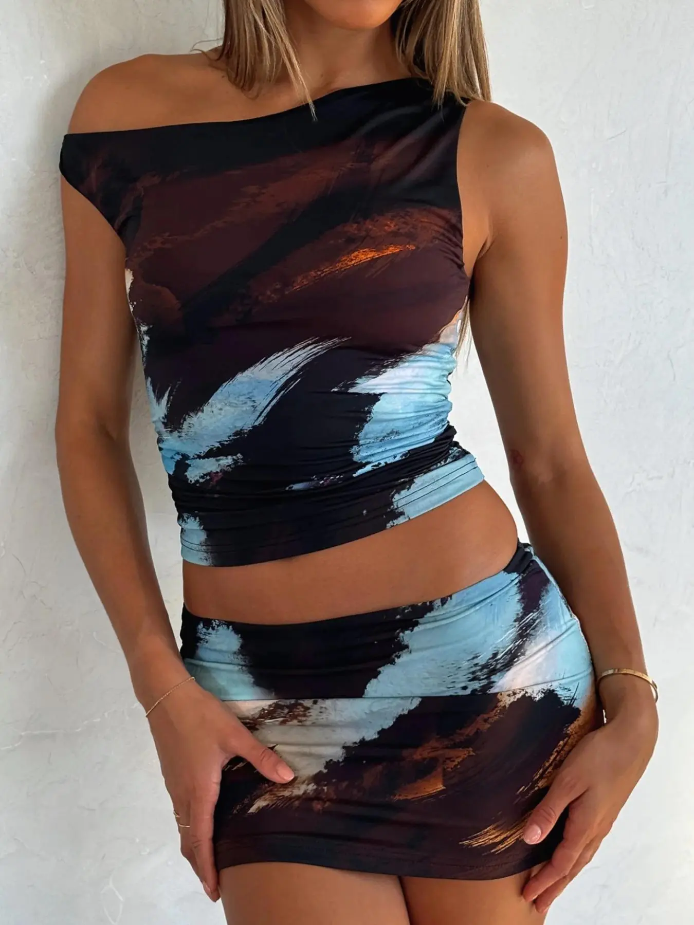 Conjunto de dos piezas de top corto con estampado gráfico y falda ajustada para mujer, elegante top y falda casuales de moda para uso diario al aire libre, ropa de mujer para primavera y otoño. #dealstoryoudays, #summer, #creatoricons, #ttssummerturnup, #shopmystyle