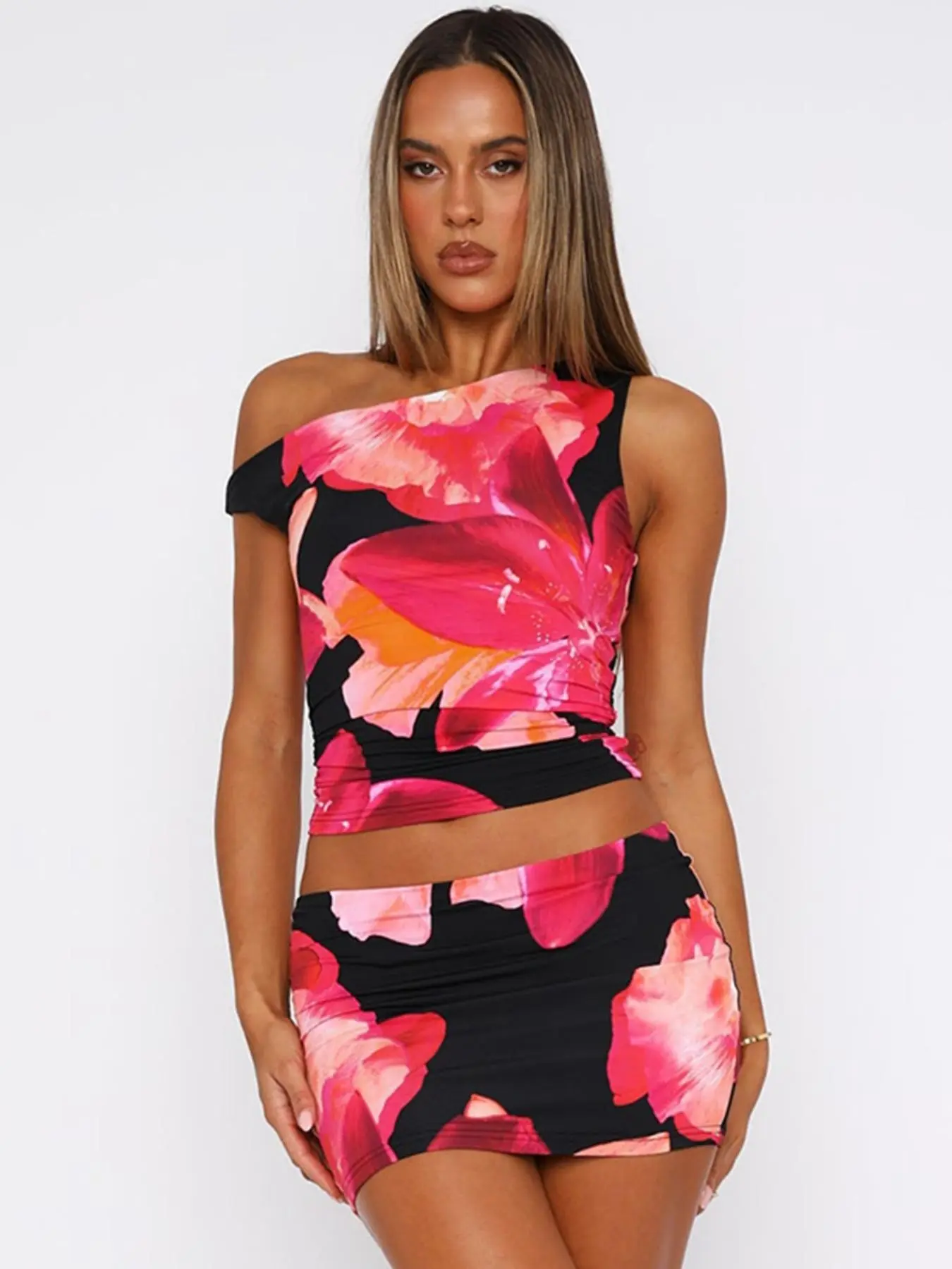 【Mini Skirt Style】: Designed with a fitted mini skirt, this two-piece set emphasizes the silhouette while adding youthful vibrancy.
