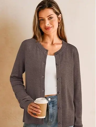 ·Design: Crew neck, long sleeve, solid color, and cropped design with ribbed hem and cuffs for shape retention. Flat buttons stay secure for long-lasting wear