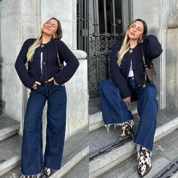 ·Style: Fashion chic sweater carigan for women, unique button pattern for a chic look, timeless elegance of chunky navy knit sweater cardigan, fall sweater with pockets