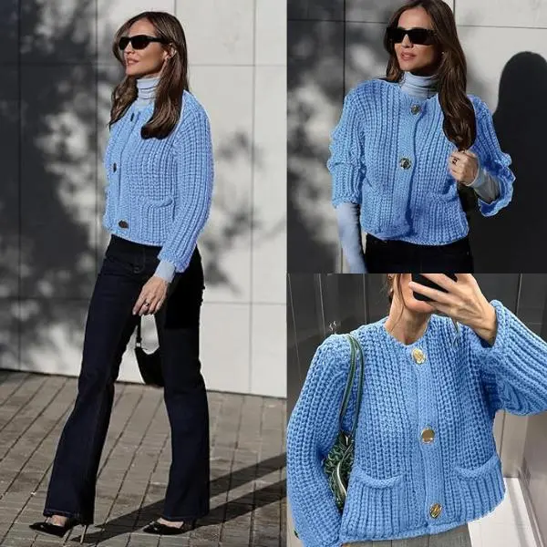 ·Women's chic vantage long sleeves sweater cardigan, a must-have coat sweater in your wardrobe