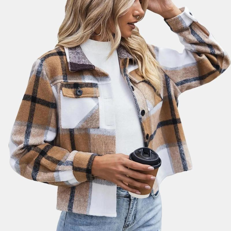·FEATURES: Vintage Flannel plaid shirts, designed with two buttoned chest pockets, button closures, lapel collars and button cuffs. The loose fit trendy cropped plaid jacket comes in various fashionable colors that never go out of style.