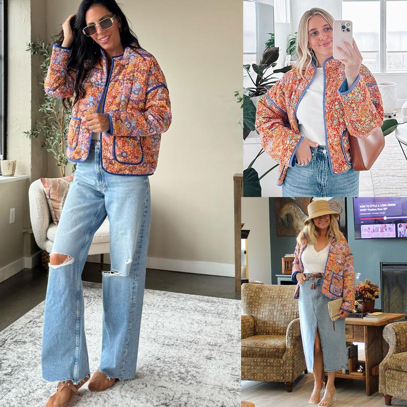 YeeZaa Women's Cropped Floral Quilted Jacket