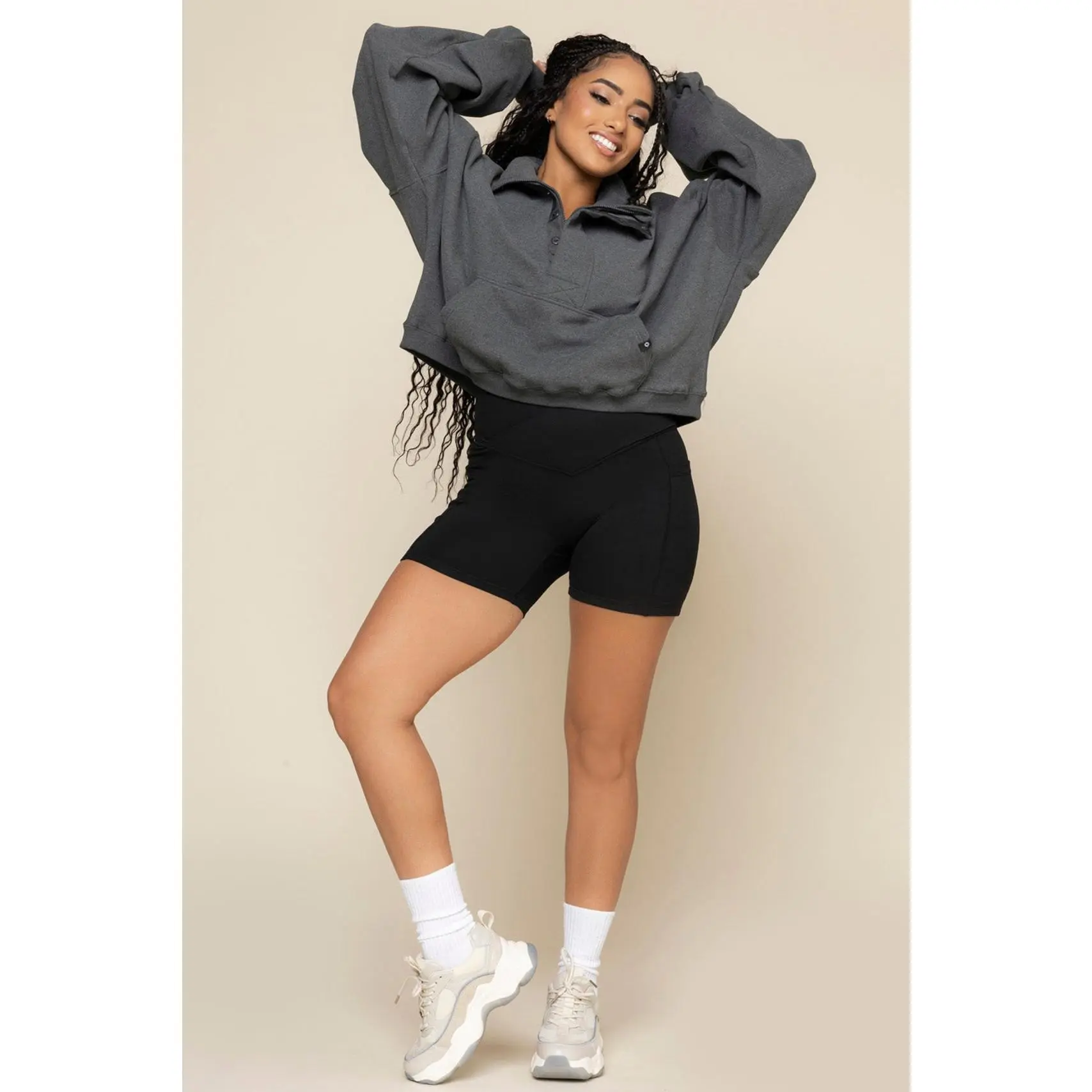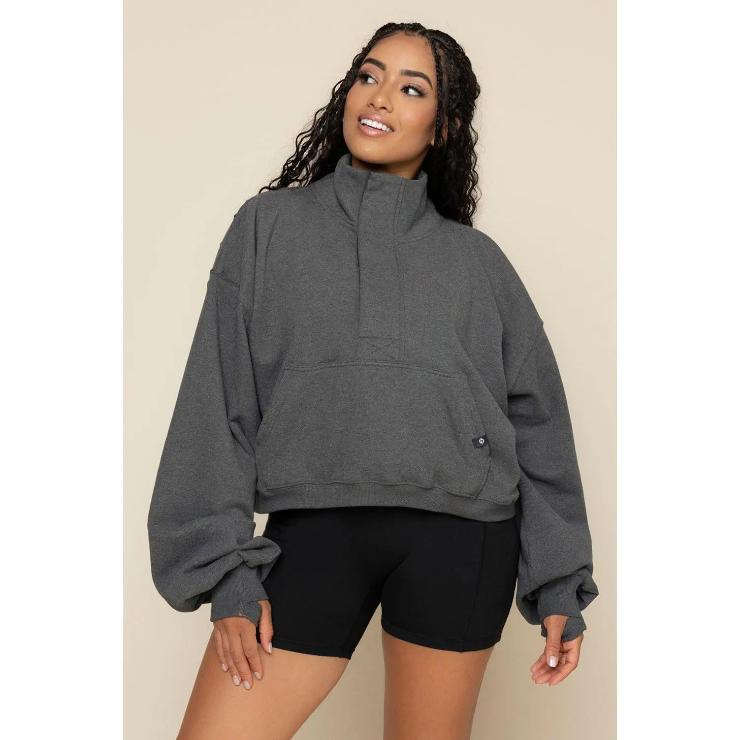 5. Ooey Gooey Crop Half Zip - Charcoal Heather