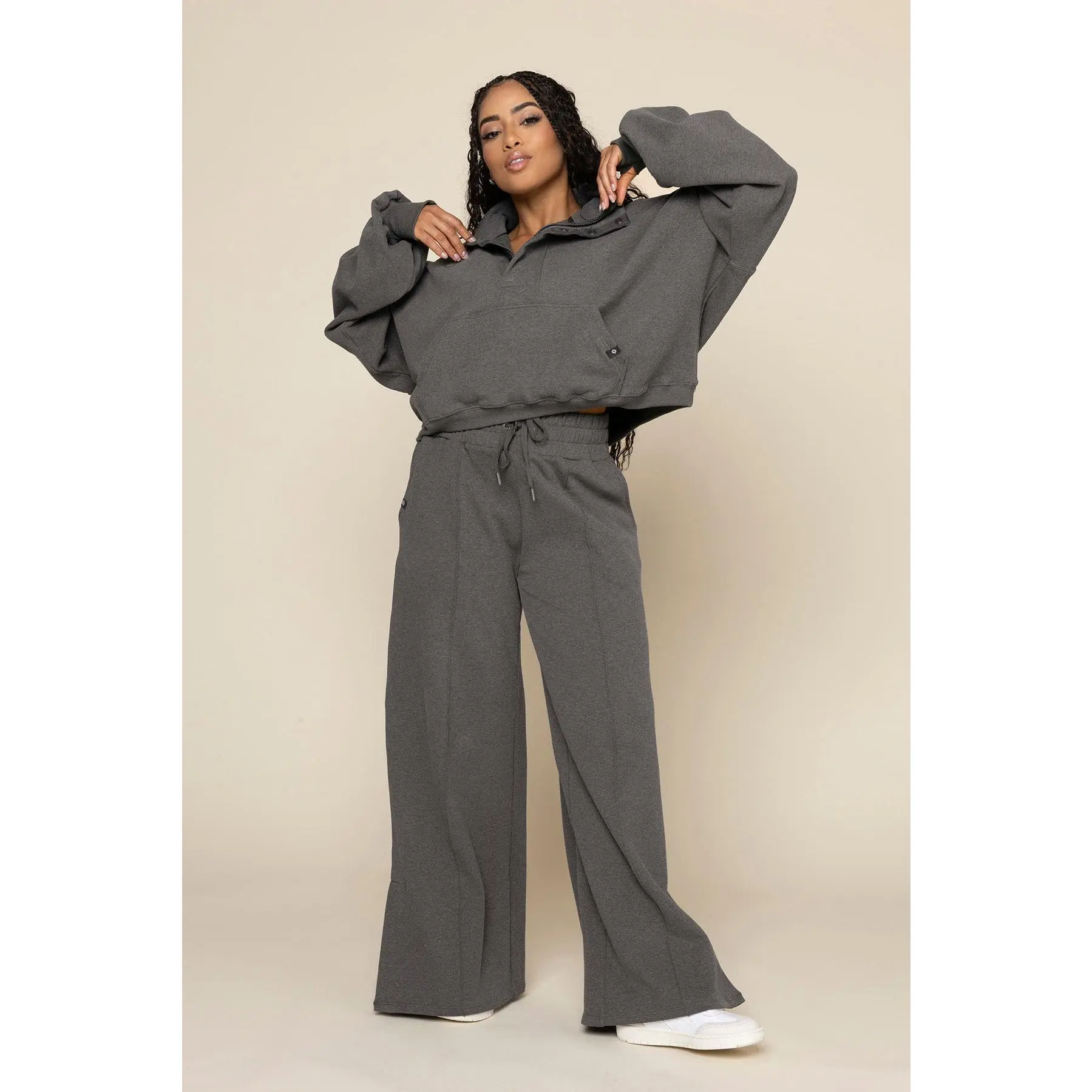 Ooey Gooey Crop Half Zip - Charcoal Heather