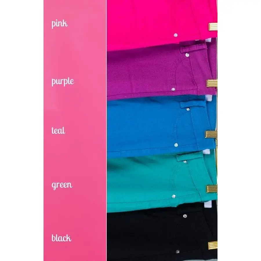 Love this material love the right colors. I have the hot pink for my daughter. They’re slimming and have some stretch will buy again.
