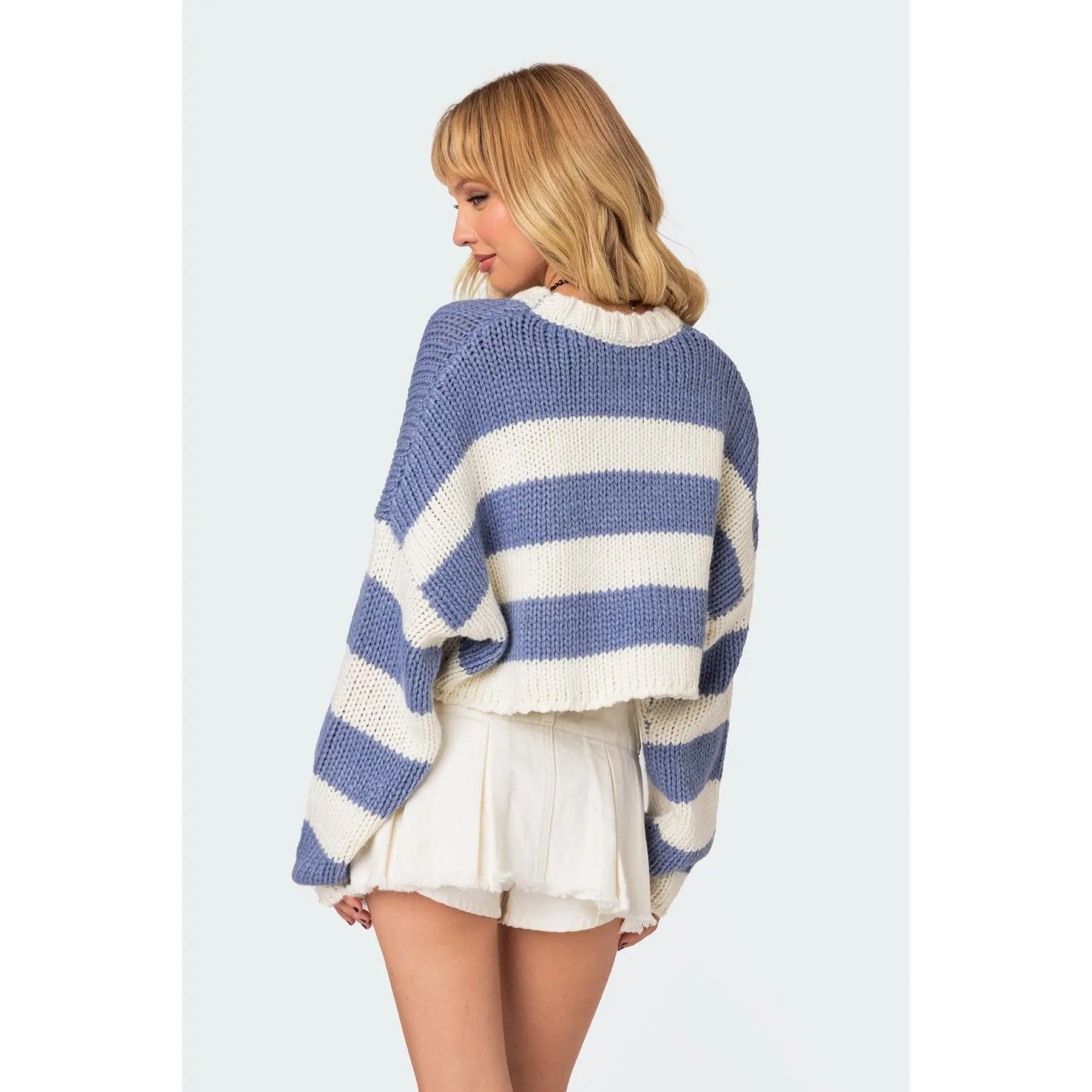 Found the perfect striped moment for transition season ☁️💙 This Ozzy Cropped Knitted Sweater from Edikted is literally $15 right now?! I’m obsessed with the chunky knit and the fit. #edikted #croppedsweater  #ootd #ootdinspo #NovoDoveCabelos