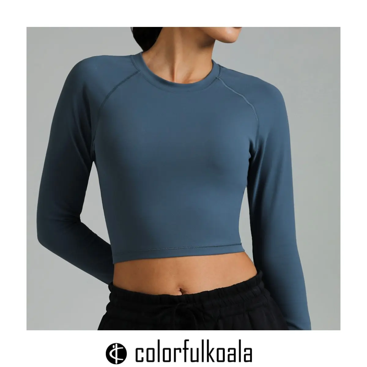 5. Colorfulkoala Women's Dreamlux Cropped Long Sleeve Top with Thumbholes Raglan Sleeves Athletic Yoga Shirt