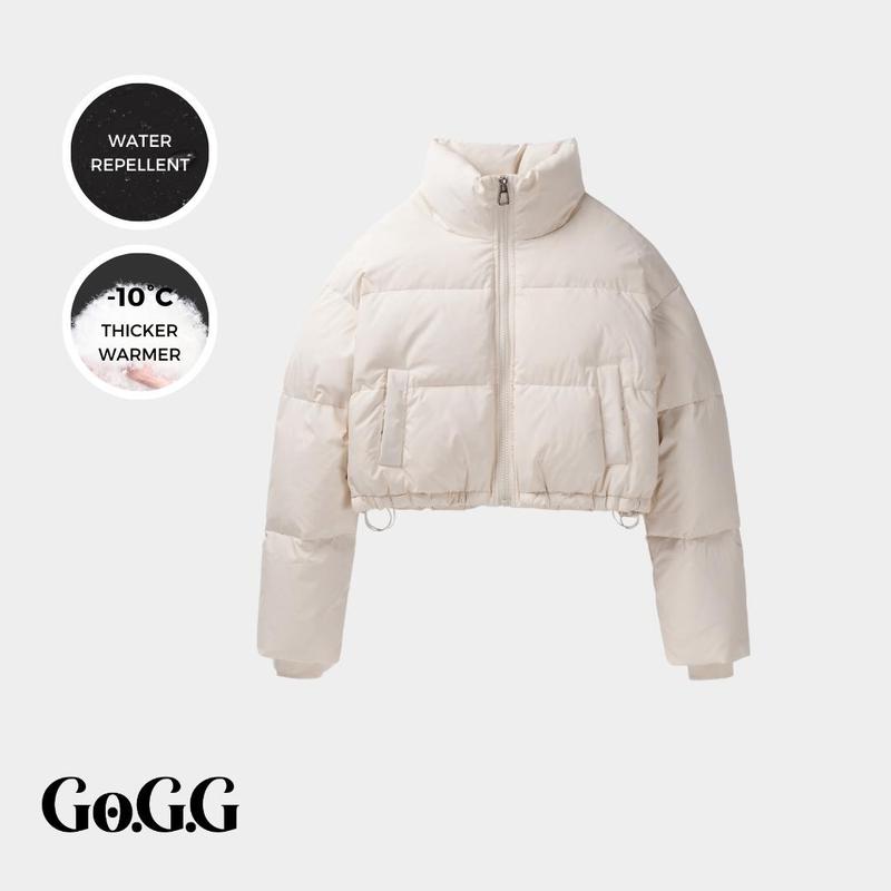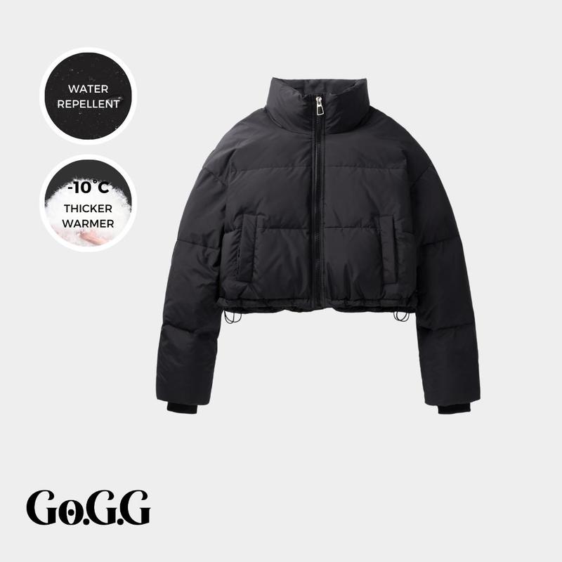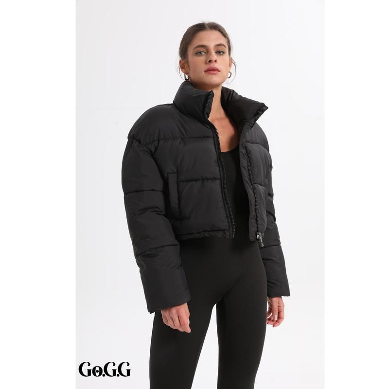 Puffy, nice material. Overall nice i just didn't except it to be too cropped for my liking.