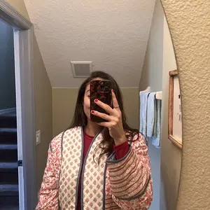 Vintage boho quilted coats for women are designed with long bat-wing sleeve, crop length, drop shoulder, floral pattern, open front, easy to take on and take off.