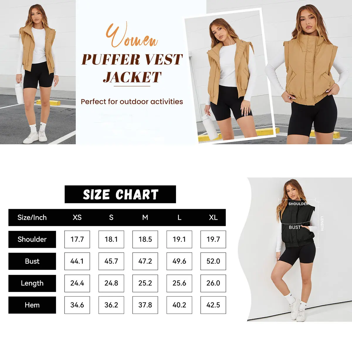 Easily pair this cropped quilted vest with sports bras, long sleeves, sweaters, hoodies, shorts, pants, leggings, sneakers, or boots. It’s a chic choice for daily wear, school, shopping, streetwear, outings, and more. Stay trendy and comfortable in this versatile puffer vest.