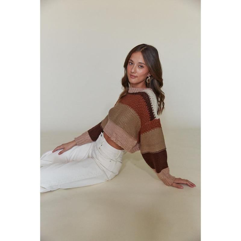 Make your days cozier with the Sheridan Cropped Striped Sweater! This cuddly knit top features a horizontal striped design, relaxed fit, long sleeves, and a scoop neckline. Pair with your favorite jeans for the perfect comfy and casual look!