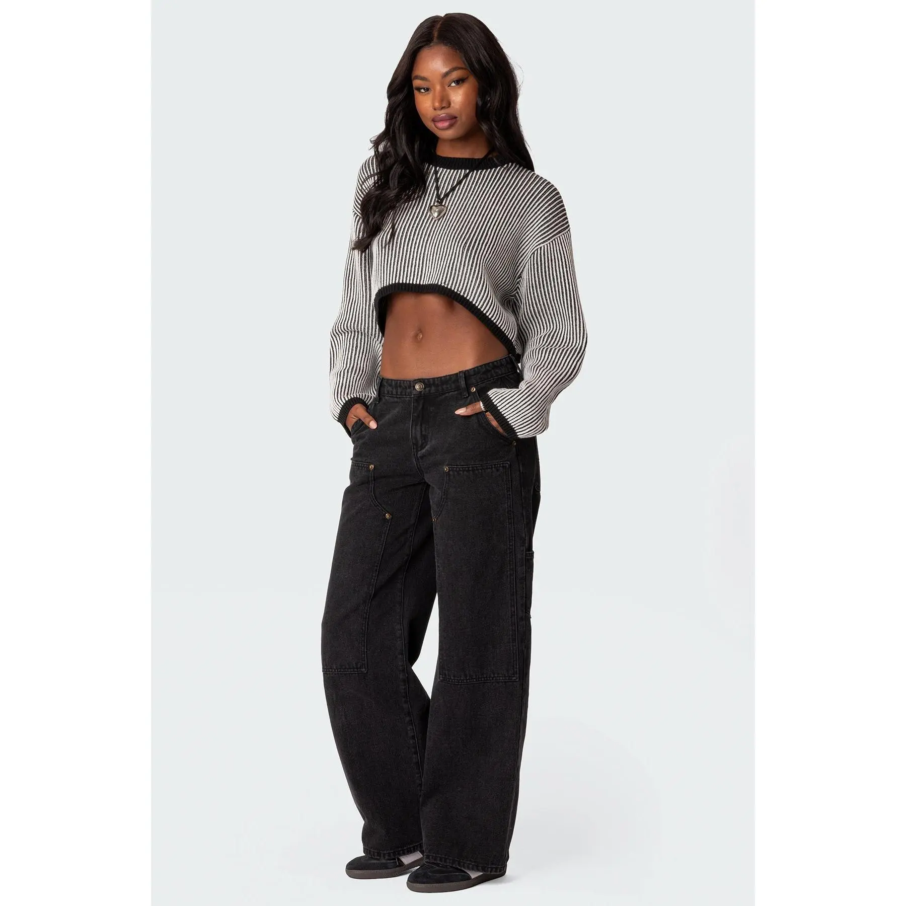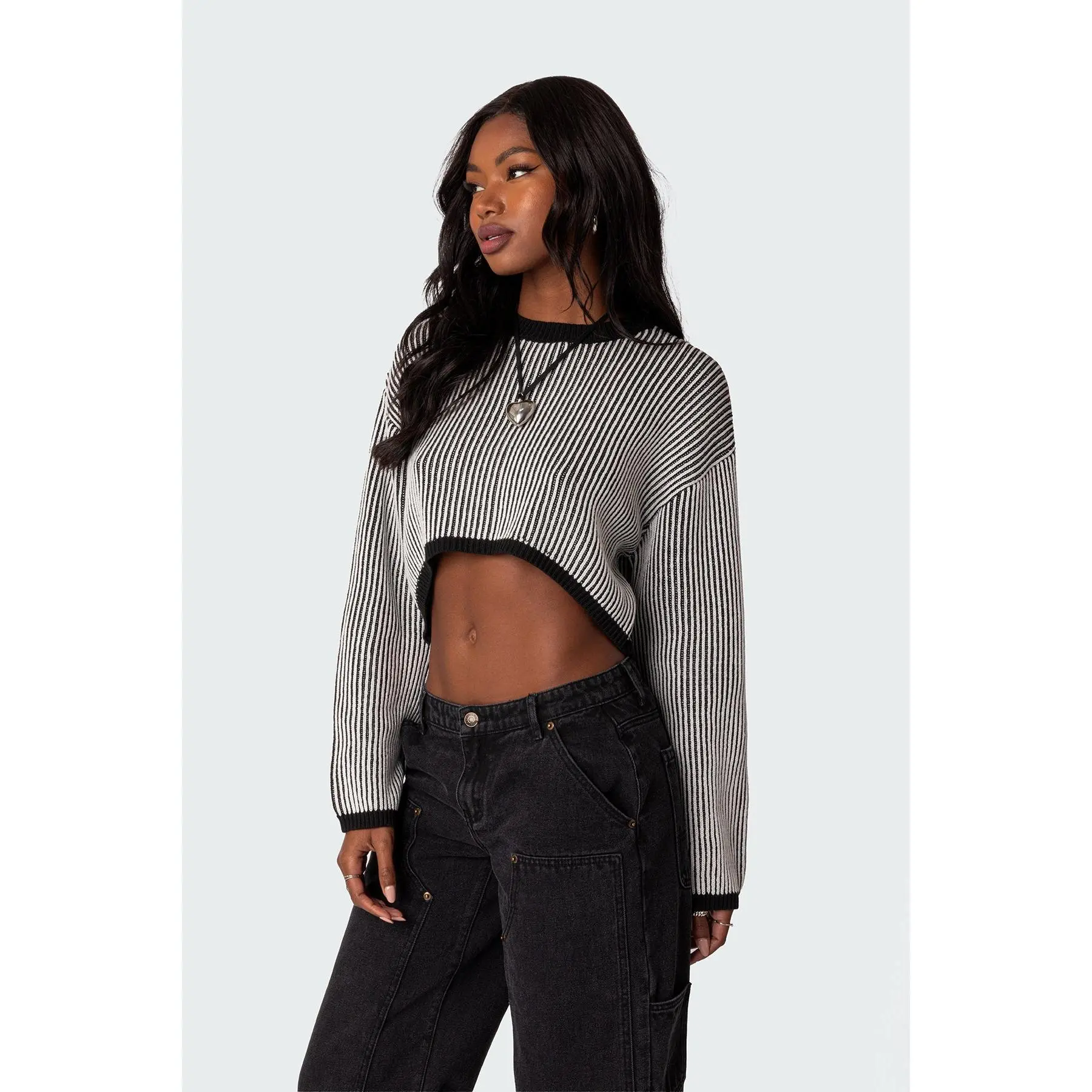 I’m loving this new cropped sweater by ##edikted What are your thoughts though? Do you like it with baggy jeans or do you think it would look better with something else?##creatorsearchinsights##croppedsweater##tiktoksweater##comfyclothes