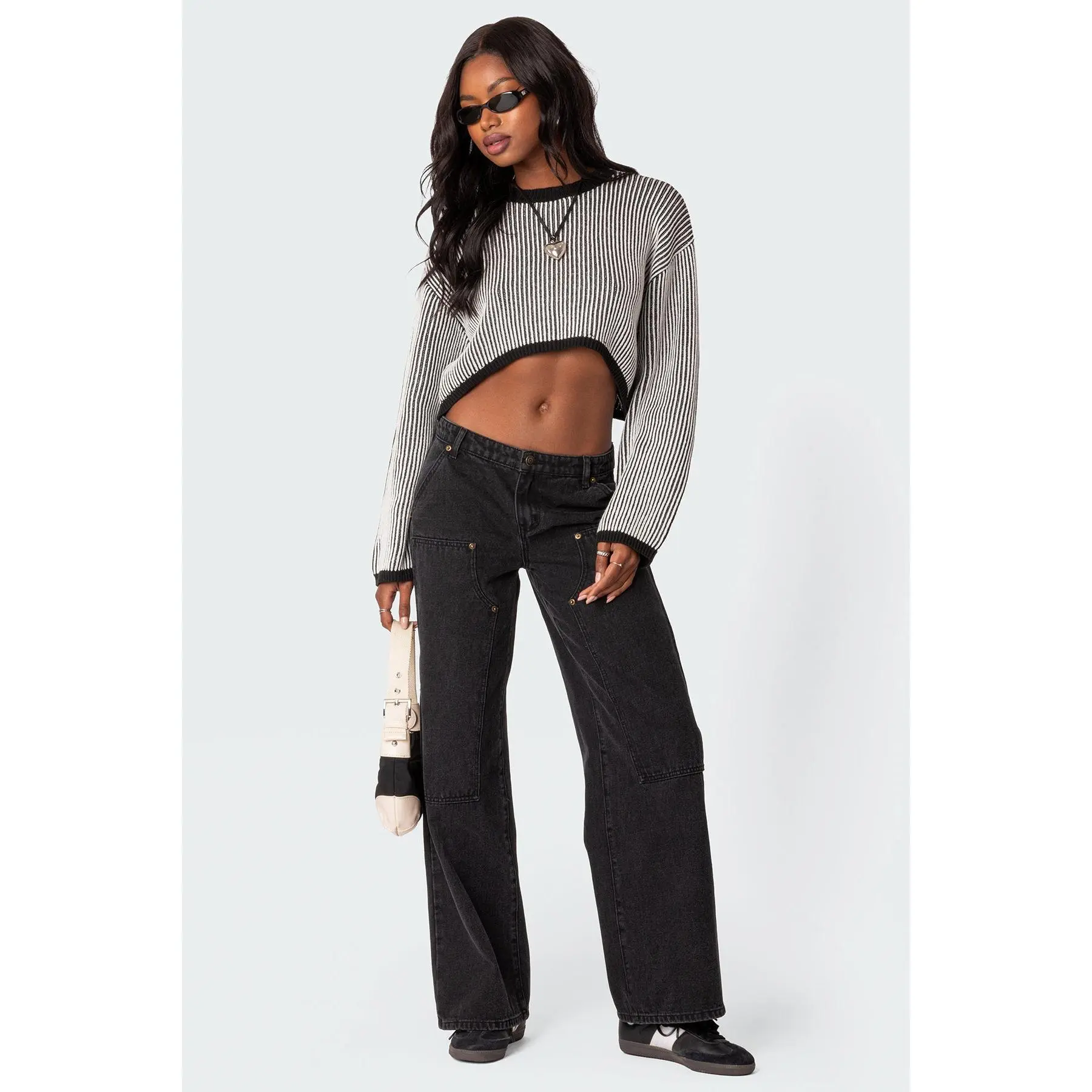 @Edikted cropped sweater with @American Eagle jeans and the Sambas! OOTD outfit inspo!     #americaneagle #sambasandalittleredbag #jumpstartsale #edikted #americaneaglejeans