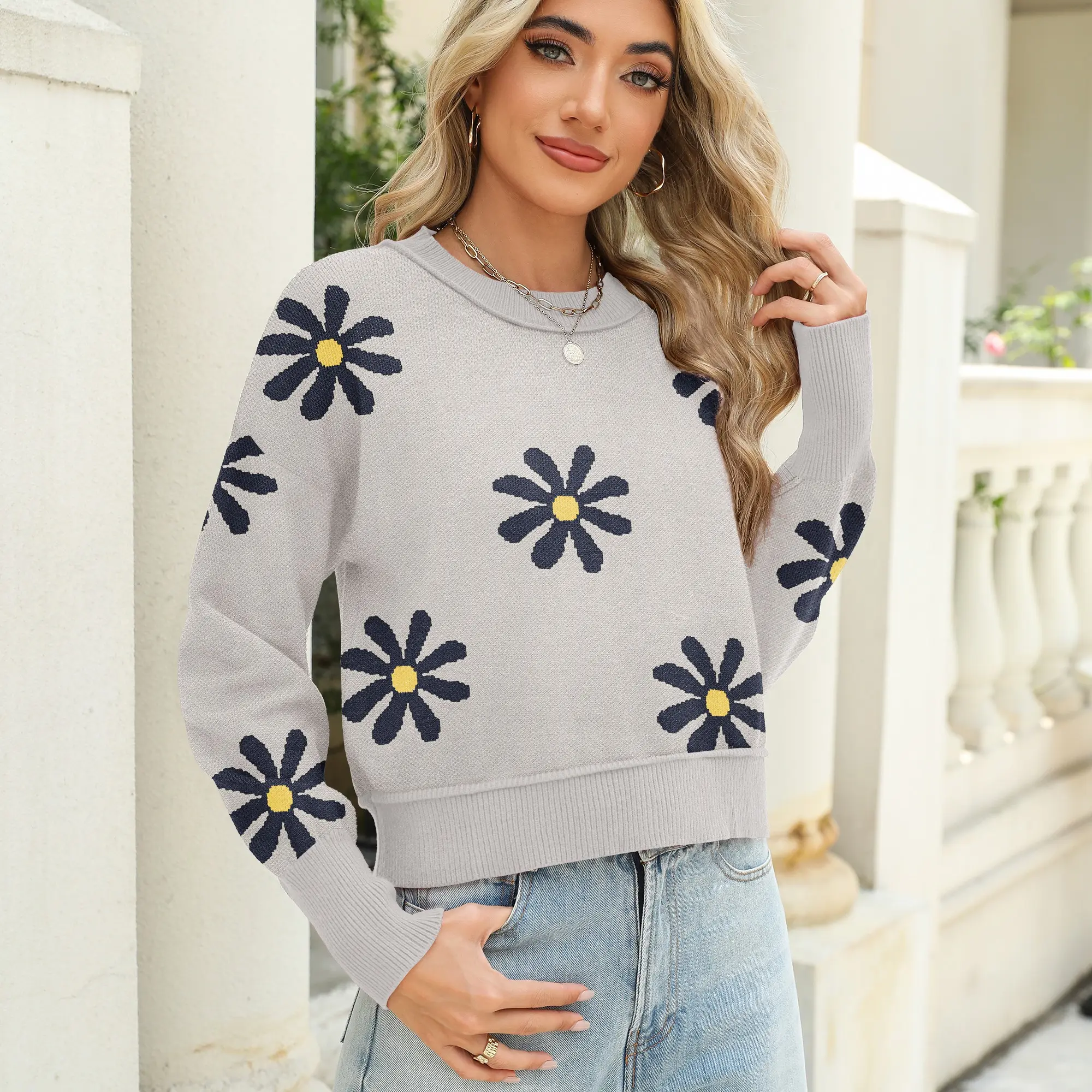·Material: 50.7% Viscose, 28.6% Polyester and 20.7% Nylon. This women's crewneck cropped sweater is made of stretchy,ultra-soft, lightweight and skin-friendly knitted fabric. The weave is warm and comfortable, so it's not prone to wrinkles, pilling and deform.