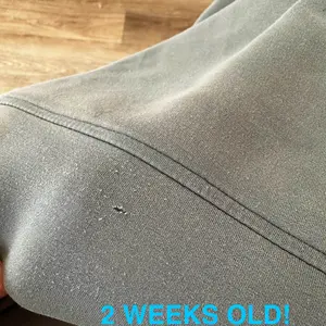 THESE ARE NOT THE SAME. I bought the exact same cropped scuba crew sweatshirt in the same color last year. II had to replace it because I splattered bleach all over it. The new one I received is not the same quality material AT ALL. It’s pilling and holes are deleting after 2 weeks and just 1 wash!