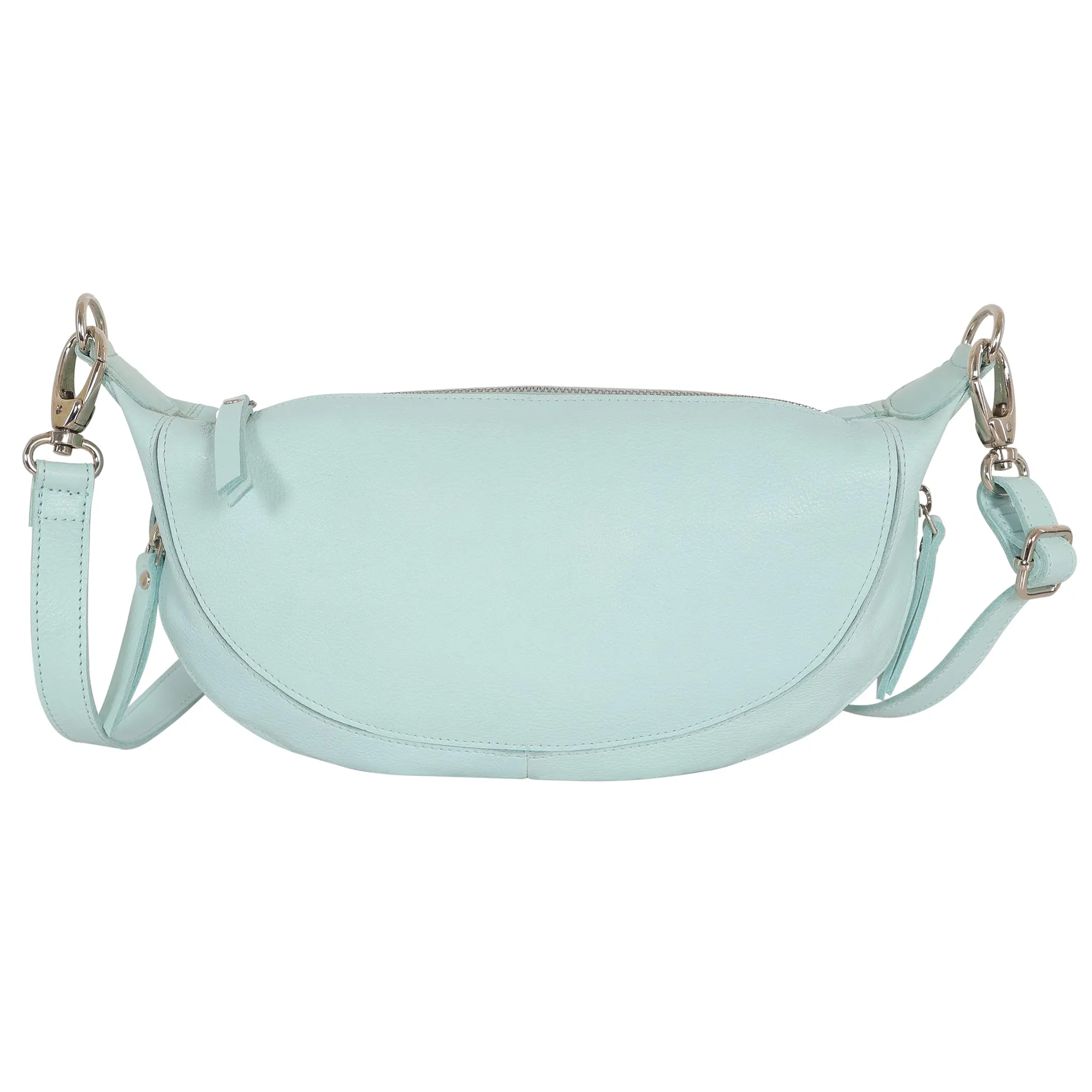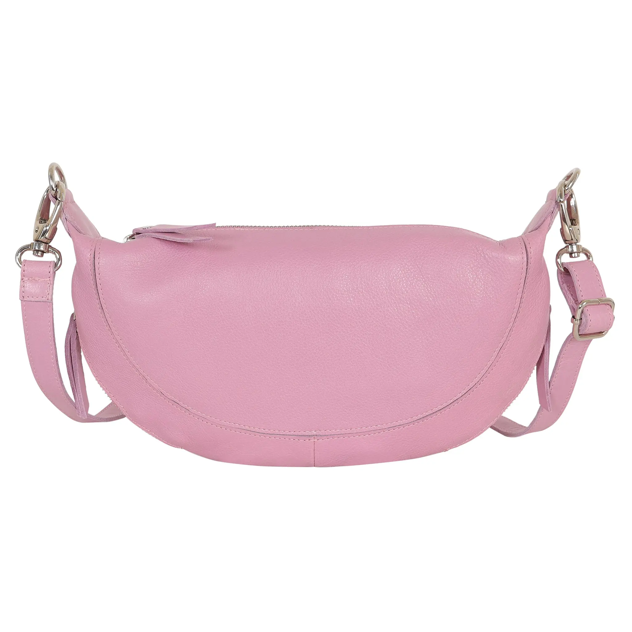 The crossbody strap is 3/4” wide and adjustable, offering a 20” max and 10” min drop. It features a secure top zip entry with leather pull, along with 2 convenient side zip pockets for easy access.