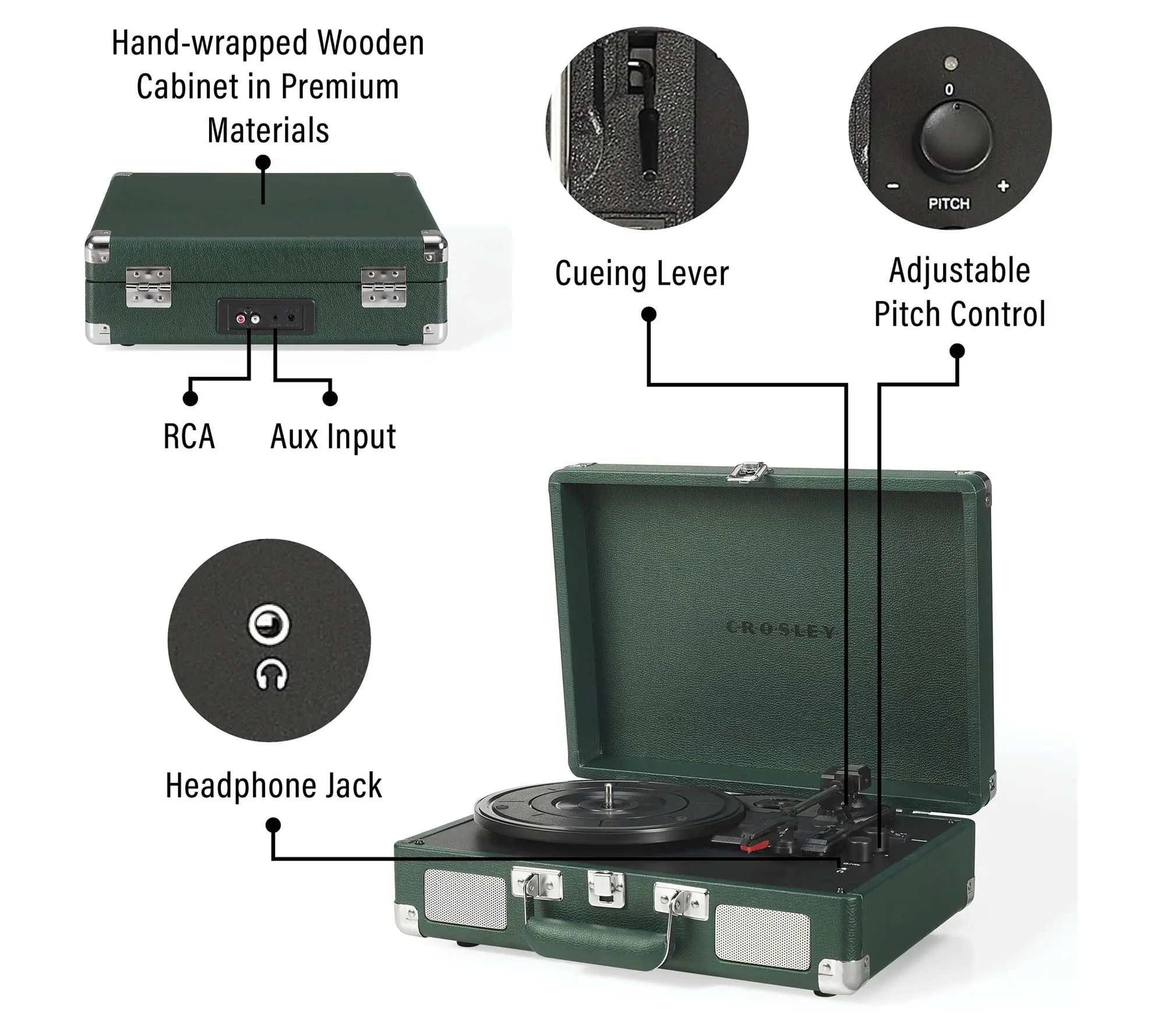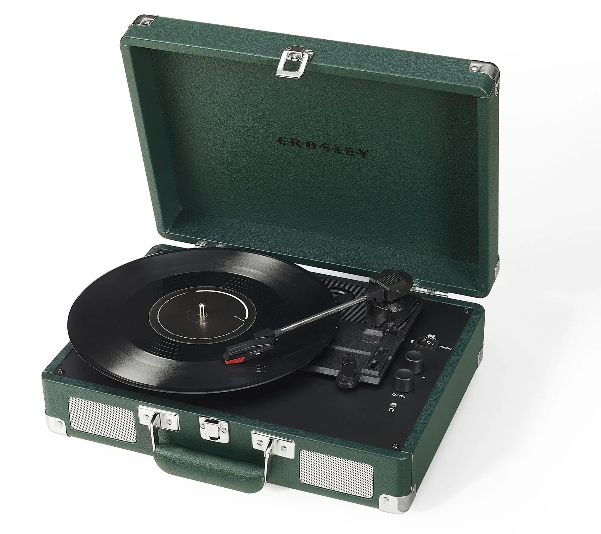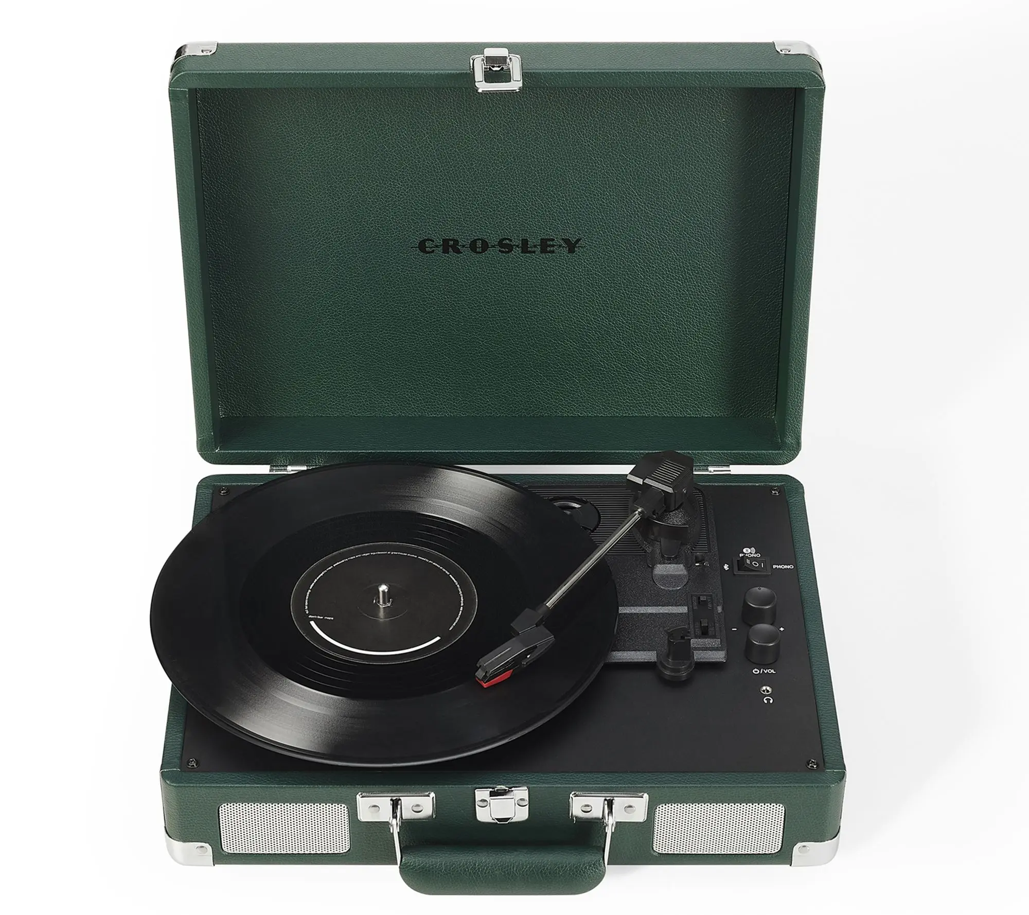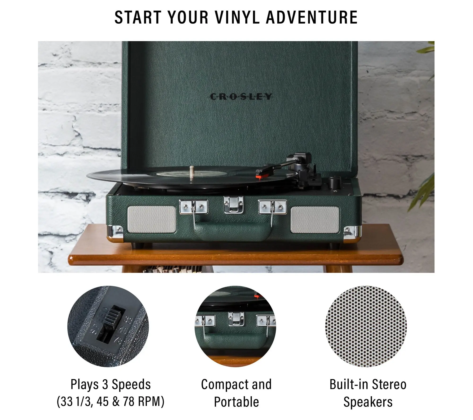 Imagine spinning your favorite vinyl while chilling at home or on the go with the Crosley Cruiser Plus Turntable. This stylish record player blends vintage suitcase design with modern Bluetooth 5.0 technology, letting you enjoy classic records or stream digital tunes wirelessly. Whether you're a vinyl enthusiast or just starting your collection, the three-speed settings (33 1/3, 45, and 78 RPM) cover all your records. The built-in full-range stereo speakers deliver rich sound, but if you want bigger audio, you can connect external Bluetooth speakers or use the RCA outputs. Plus, adjustable pitch control lets you fine-tune the music to your liking. It also features a headphone jack for private listening sessions. The package includes the turntable itself, a 45 RPM adapter, and a power adapter, so you’re ready to play right out of the box. Lightweight and portable, this turntable fits perfectly into your modern lifestyle with a nostalgic twist. Ready to bring your vinyl collection to life? Grab the Crosley Cruiser Plus and start spinning!