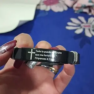Lleva contigo esta poderosa verdad cada día. Más que una simple pulsera de cuero grabada, es un recordatorio constante de fortaleza, fe y propósito en tu vida.