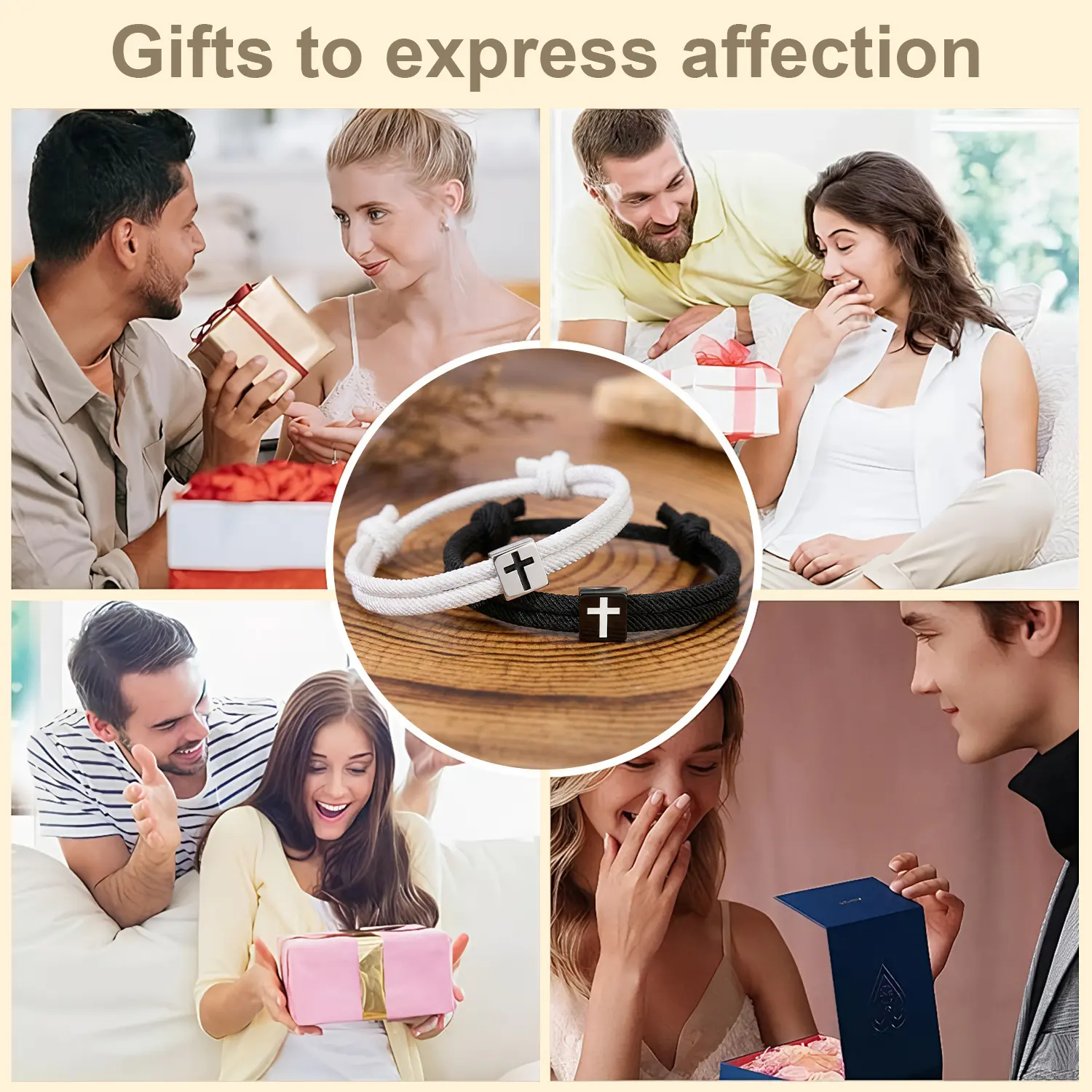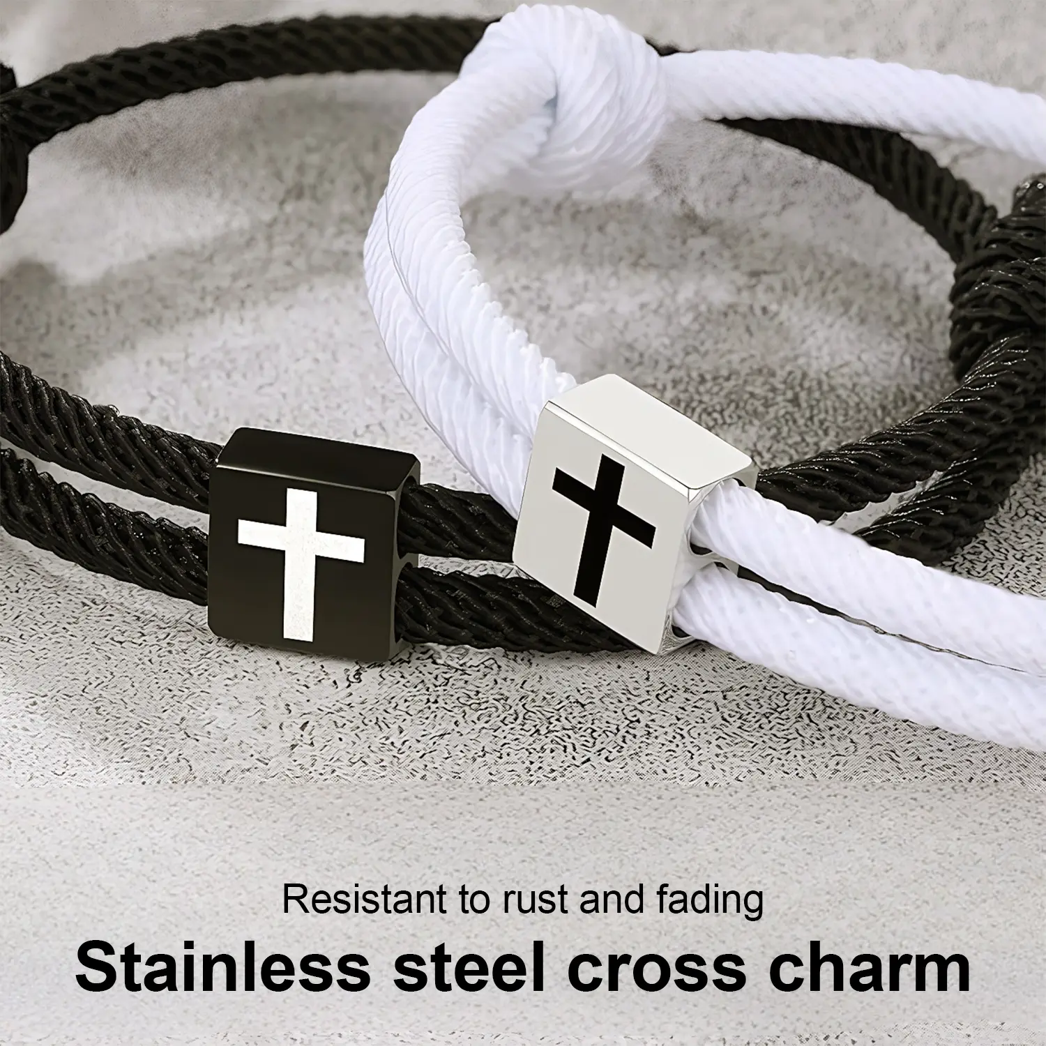 2pcs Cross Braided Rope Bracelets for Couples, Christmas Valentines Gifts, Fashionable Adjustable Bracelet for Men Women Teen Girls Fashion Jesus Bracelets Christian Baptism Gift