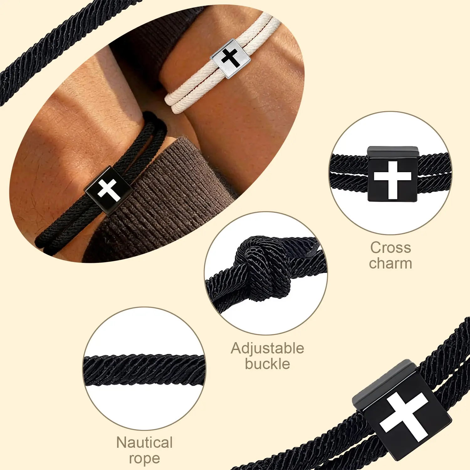 Materials: Our bracelets are made of handmade braided rope, which is strong and sturdy. Comfortable to wear and not easy to break. High quality stainless steel cross charms, never fade or rust.