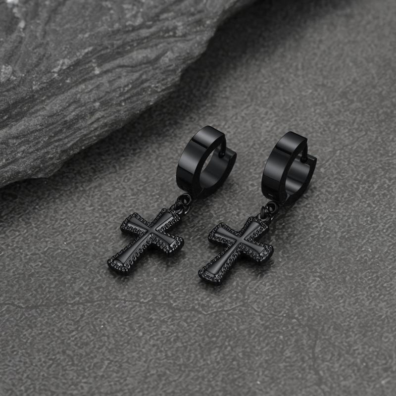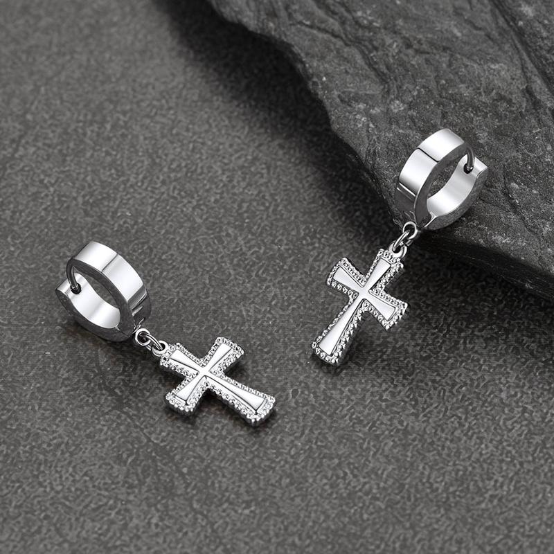 FaithHeart Cross Dangle Hoop Earrings Stainless Steel