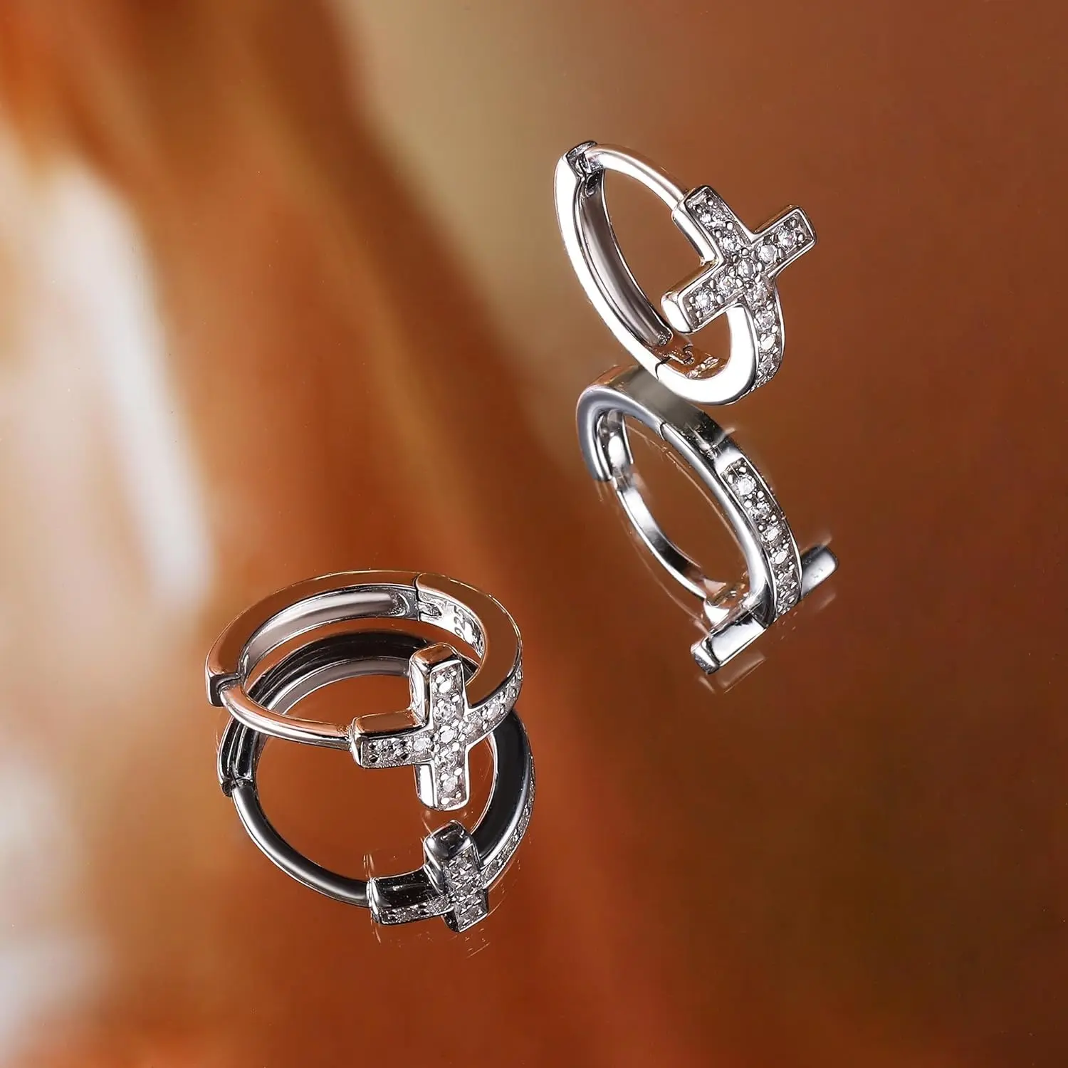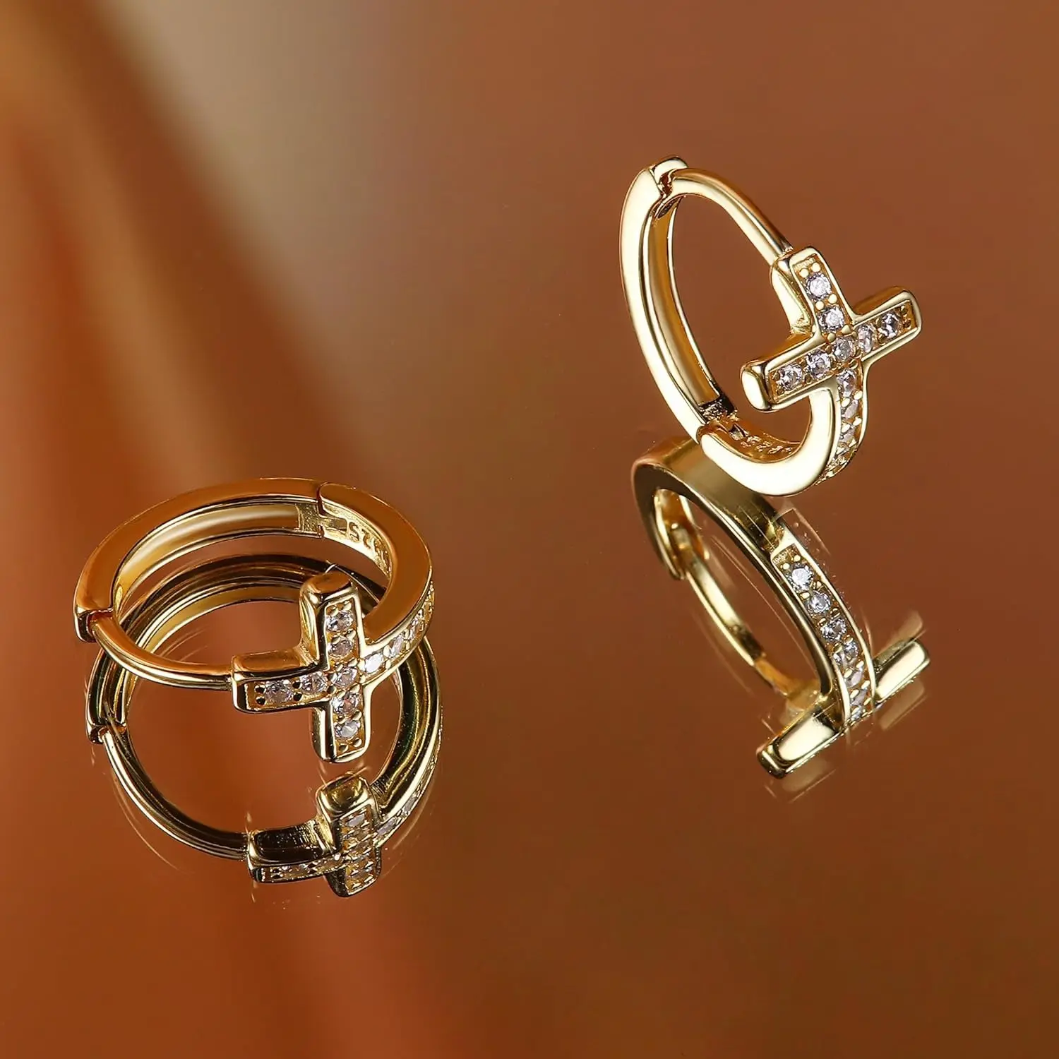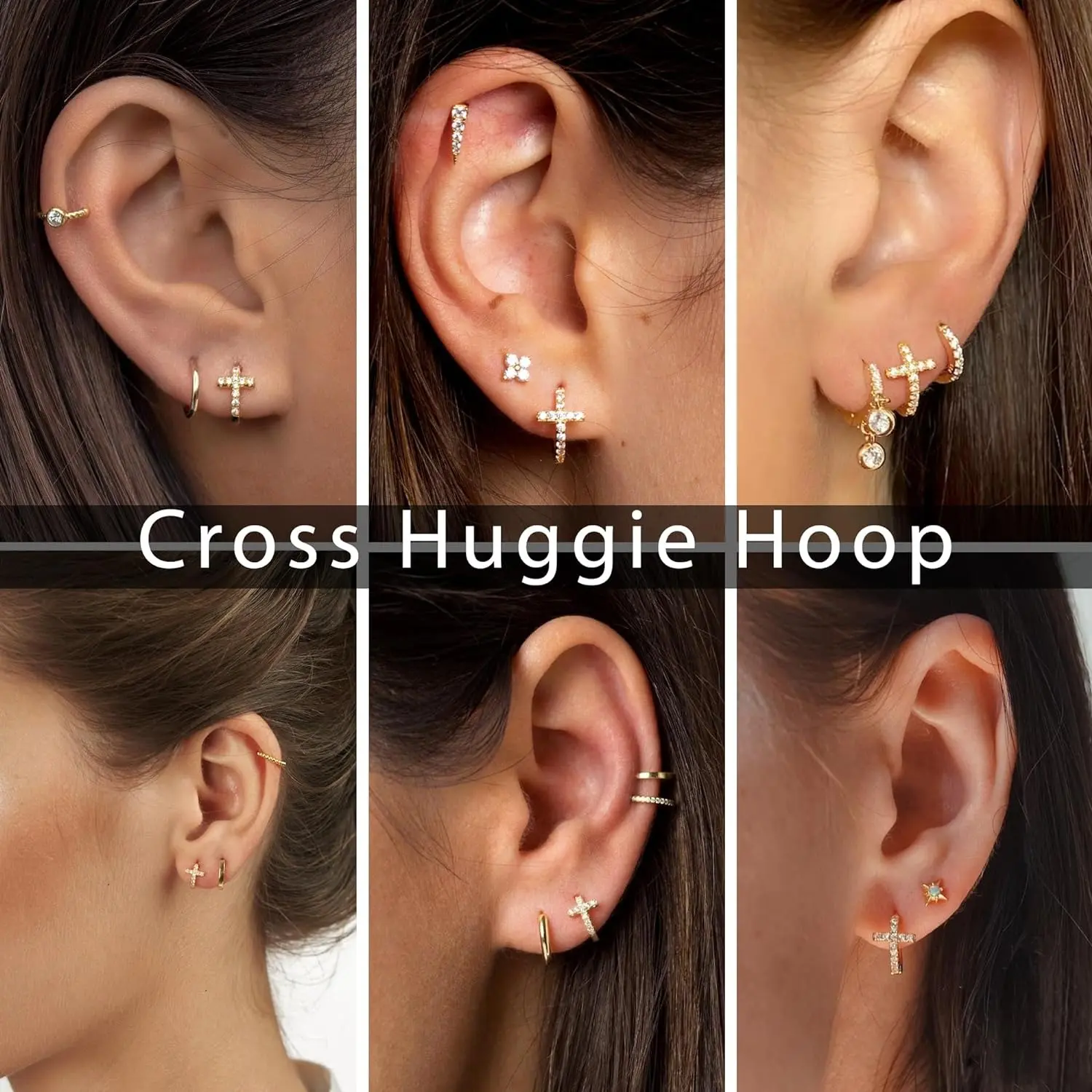 【Trendy Design】: Cross earrings are never out of style! Cross symbolizes love and redemption, perfect to show your faith. This cross hoop earrings, which was inlaid with dazzling cubic zirconia, make wearer gorgeous. The trend of huggie earrings design adds a touch of elegance to the entire earrings, will be your everyday earrings