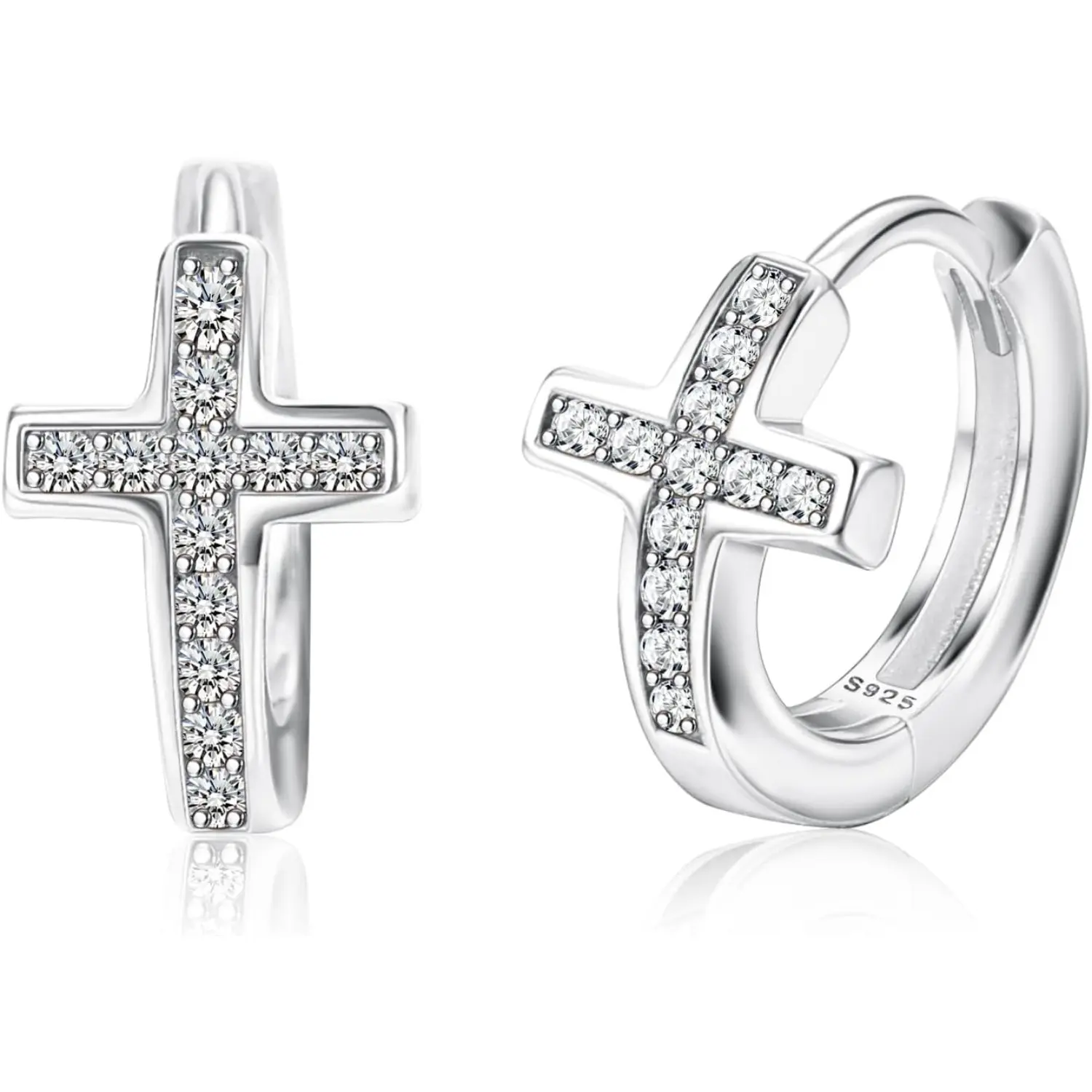 【Sterling Silver Cross Earrings】: This dainty small cross hoop earrings is crafted nickel free, lead free and hypoallergenic, safe for sensitive skin, will not turn your ears green or red, and lasting color retention. Paved with AAA+ quality cubic zirconia, highlight your charm