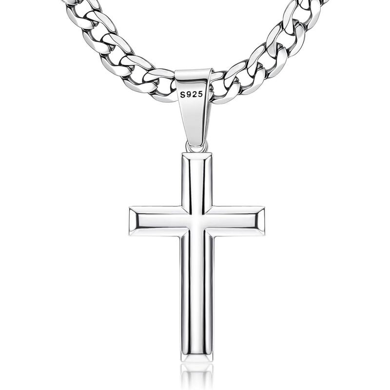 ·S925 Sterling Silver: The 925 sterling silver cross pendant with 316l stainless steel diamond cut cuban link chain, which is strong and sturdy. Hpoallergenic, no nickel and lead, suitable for sensitive skin, never lose luster