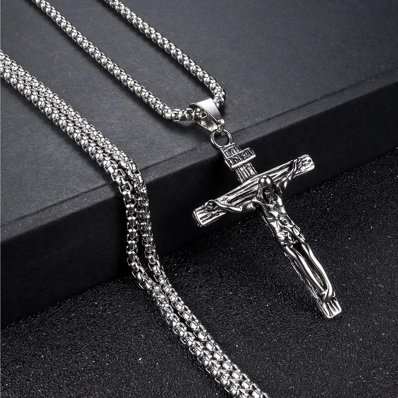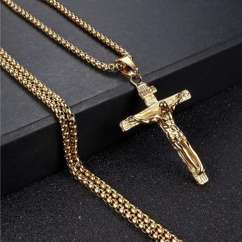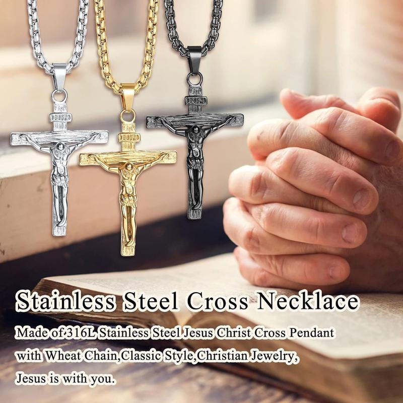 ·CROSS NECKLACE FOR MEN : Made of 316L stainless steel, hypoallergenic, lead-free and nickel-free. The surface is mirror polished, antioxidant, excellent electroplating effect, never deformed or discoloured. With a strong hand and strong weight feeling, the cross necklace is extremely comfortable to wear.
