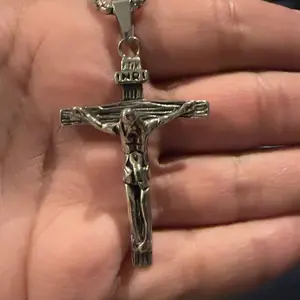 ·JESUS CROSS Pendant NECKLACE The round Venetian necklace is 3.5 mm thick and 61 cm long. The high-quality cross pendant can be used as a car interior protector, hung on the rear-view mirror as a decoration and is a kind of amulet. A practical necklace that is compatible with pendants of all sizes. Can be worn on its own.