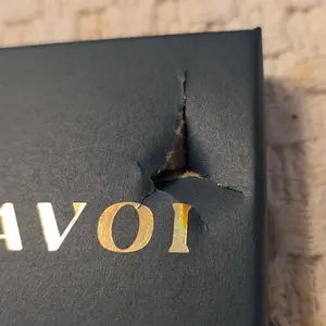 This is my 2nd order. The first order arrived perfect. This order arrived smashed with a hole through the package and through the jewelry box. Please see photo.