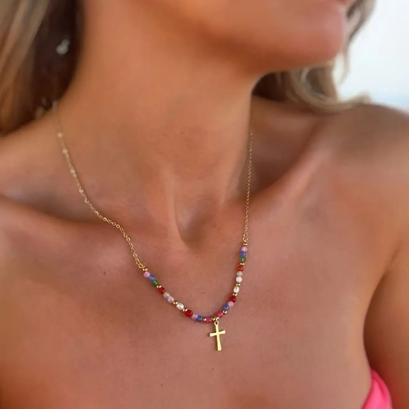 Love this necklace I wear it everyday! It has different colors I can wear with almost anything.