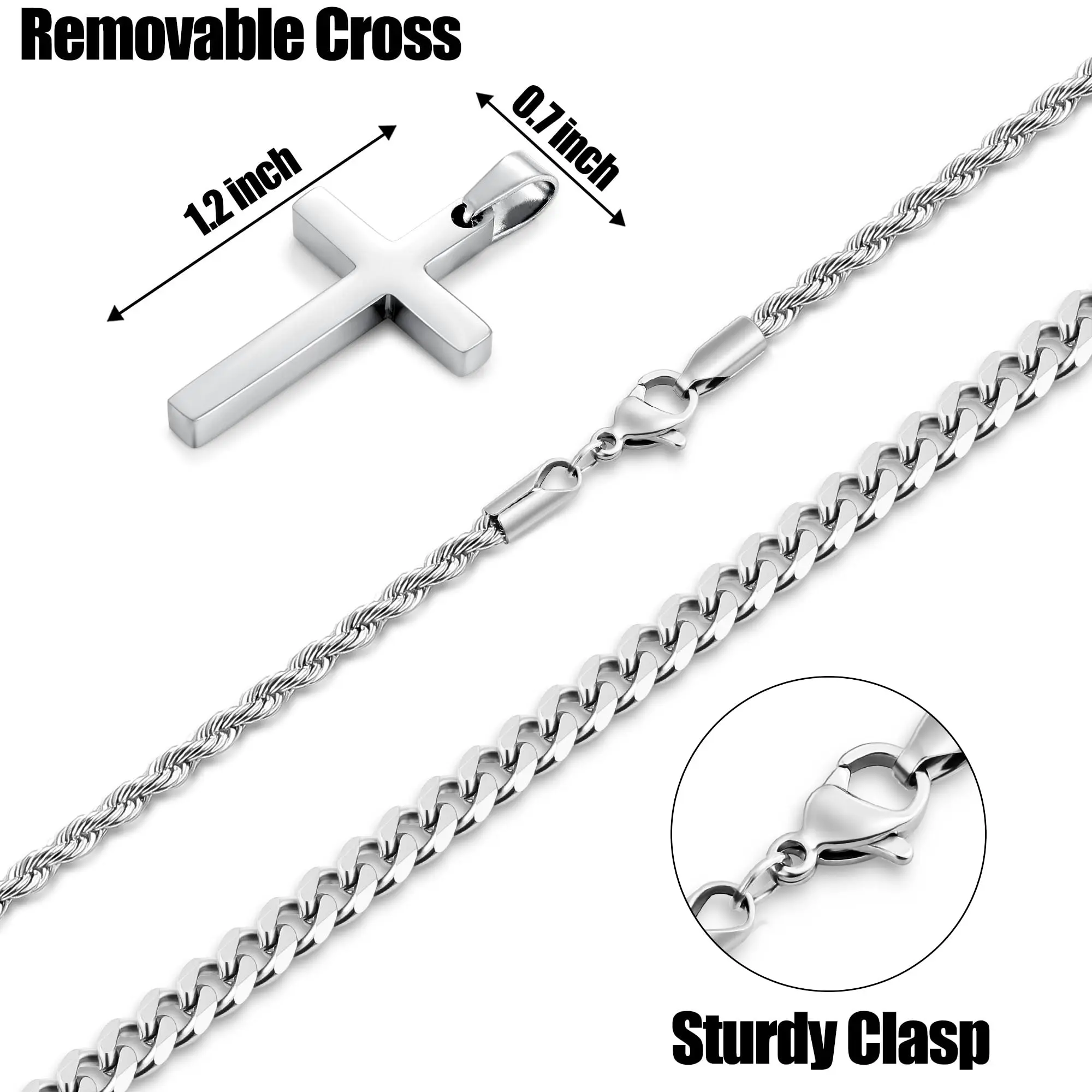 ·Size: Light weight 1.2*0.7" cross pendant, 5mm width 18/20/22" length cuban chainand 2.5mm width 20/22/24" length rope chain. Wear alone or layer to show off your own style