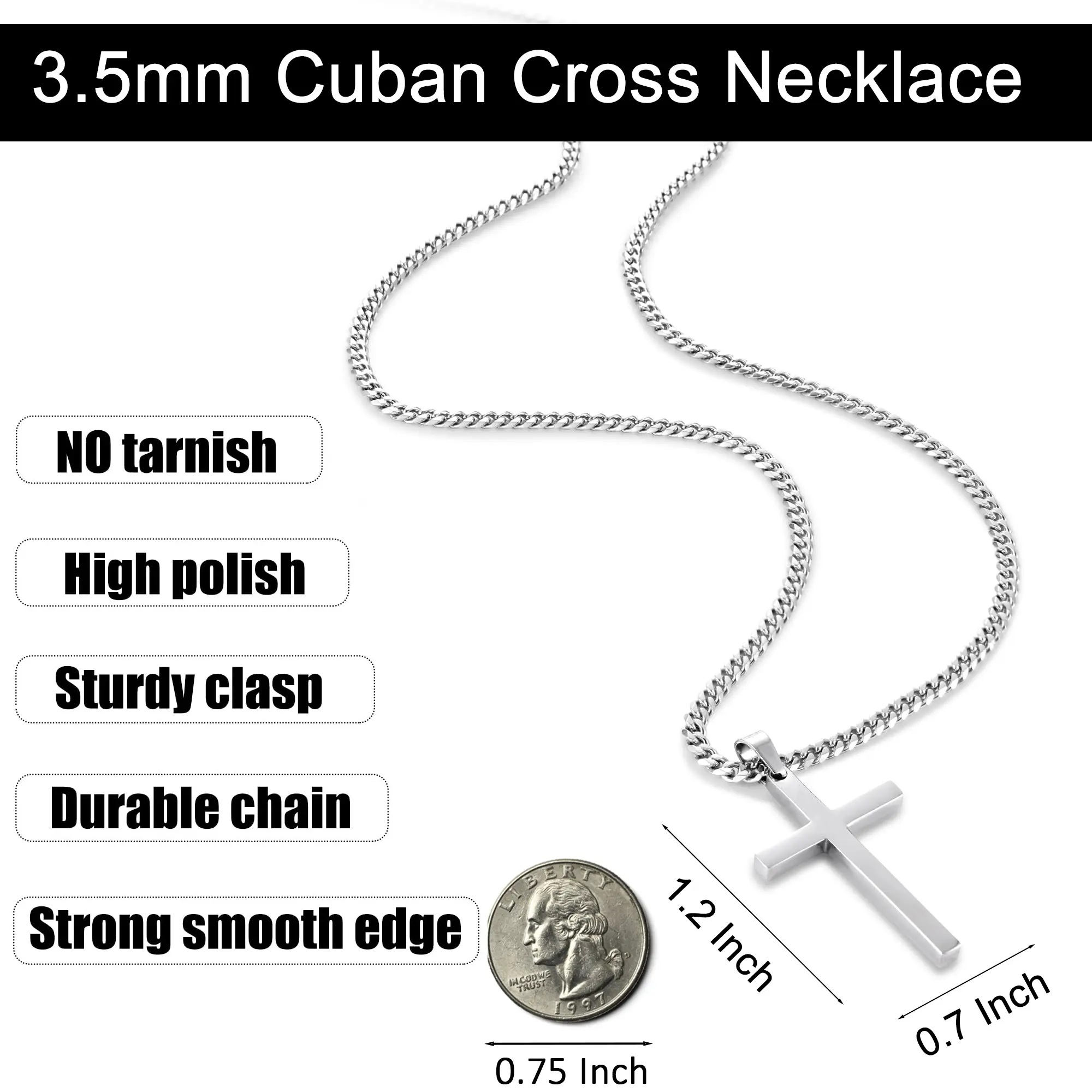 Only got the chain and it had 3 to 5 kinks in chain description is not as described I messaged the seller with no response to see about exchanging it and asking where cross is would not recommend especially where I messaged and no response needed this before Father’s Day I’ll just have to find one and reorder it kinda sad because I went off reviews