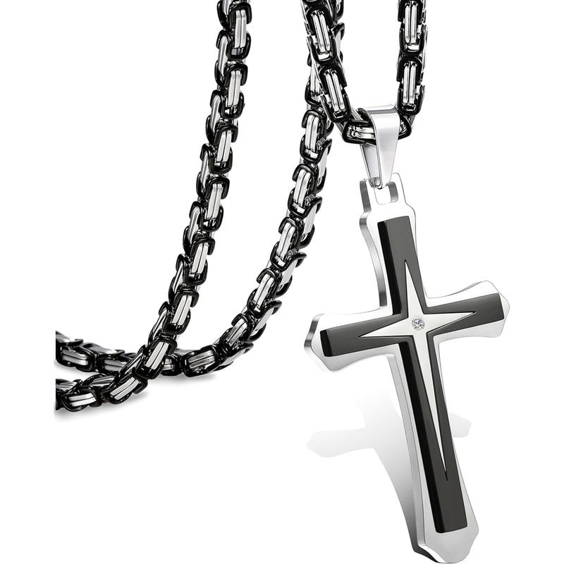 ·Chic Design: Unique Cross Pendant with Shiny CZ inlaid, Perfect match the neckace, Enhance thr Glamour of Men