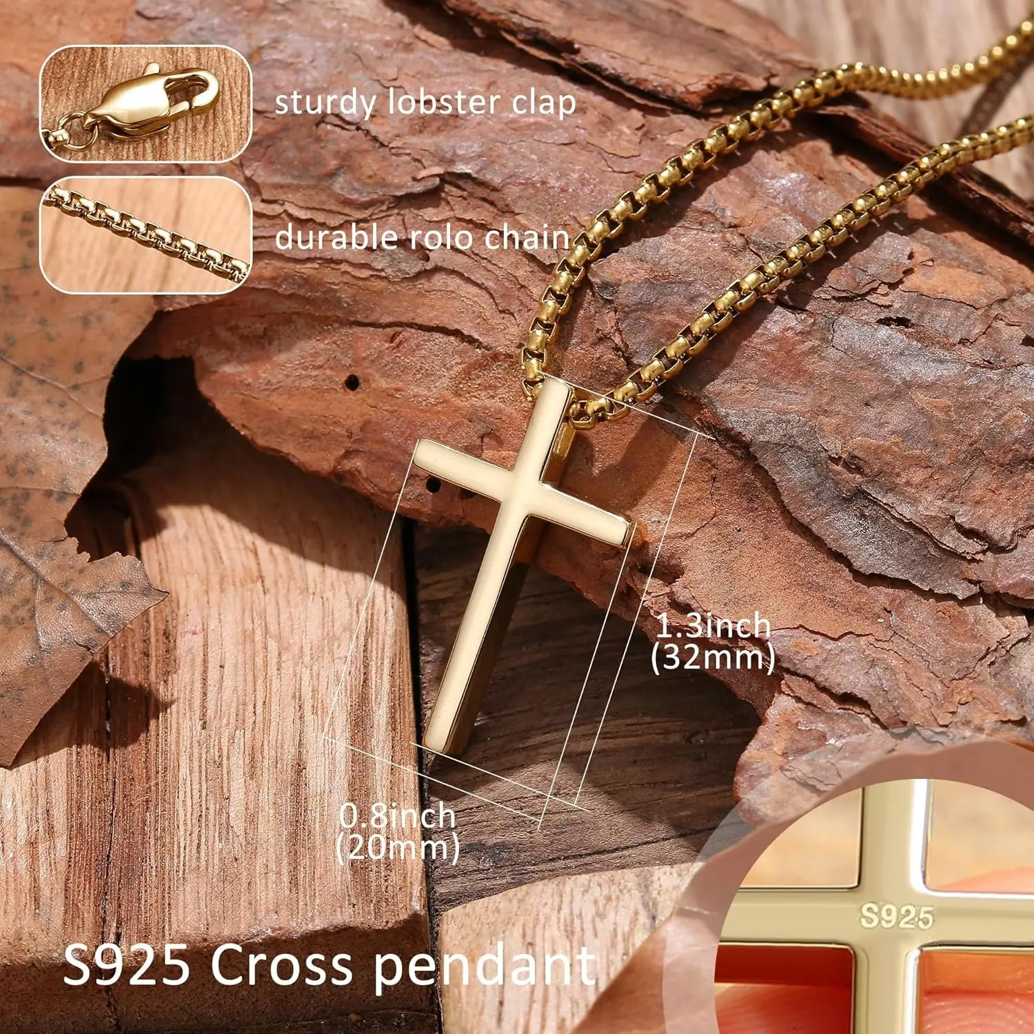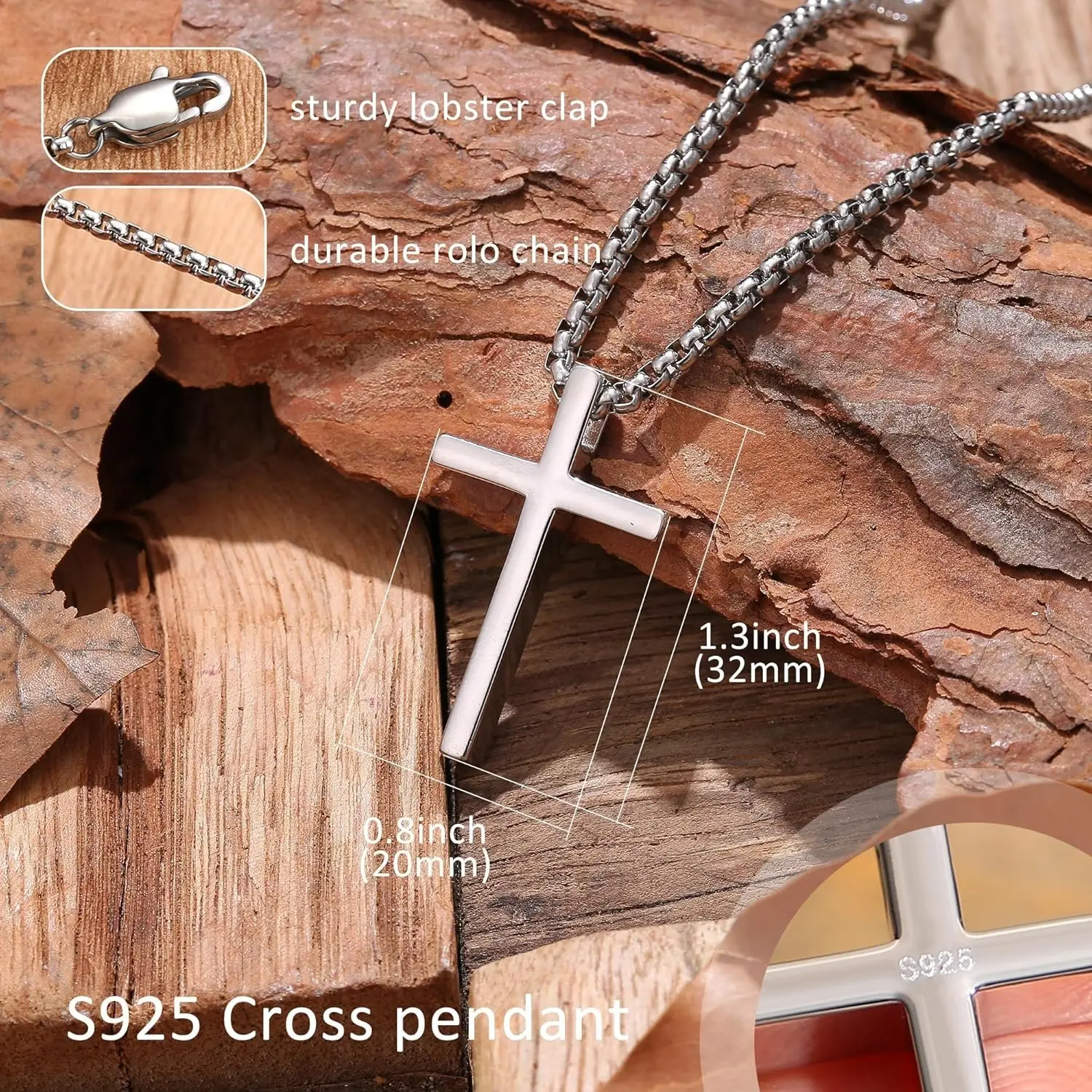·Hypoallergenic Cross Necklace sterling silver cross pendant,smooth stainless steel cross chain for men features an upgraded long lobster clasp,don't break easily.Nickel and lead free,safe for sensitive skin,strong and durable mens necklace chain suitable for daily wear and never tarnish.