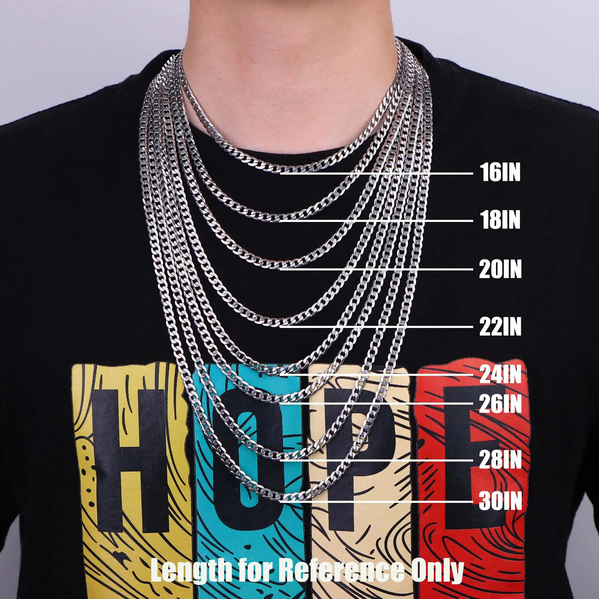 ·Silver Cross Chain Size : Sterling silver cross pendant height: 1.57in(40mm), width: 0.98in(25mm). 3/16" wide(5mm) silver cuban link curb chain in 16 to 30 inches chain length. Strong and smooth edge silver cross necklace with flexible long lobster-claw clasp, easy to use. Sterling silver cross chain with cool elegance for those who value beautiful and stylish cross necklace jewelry. Please Chose Right Size