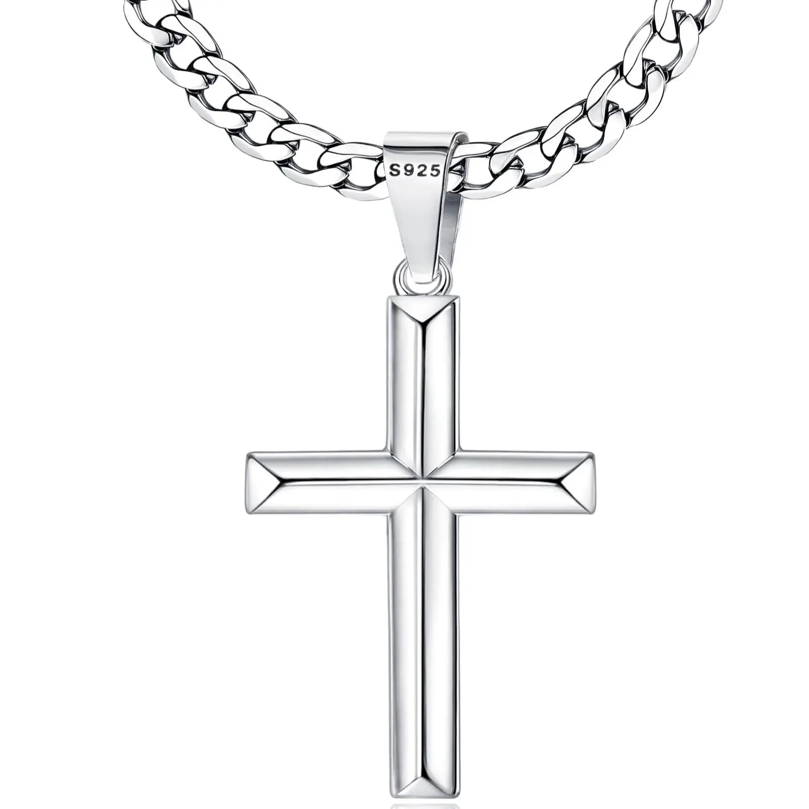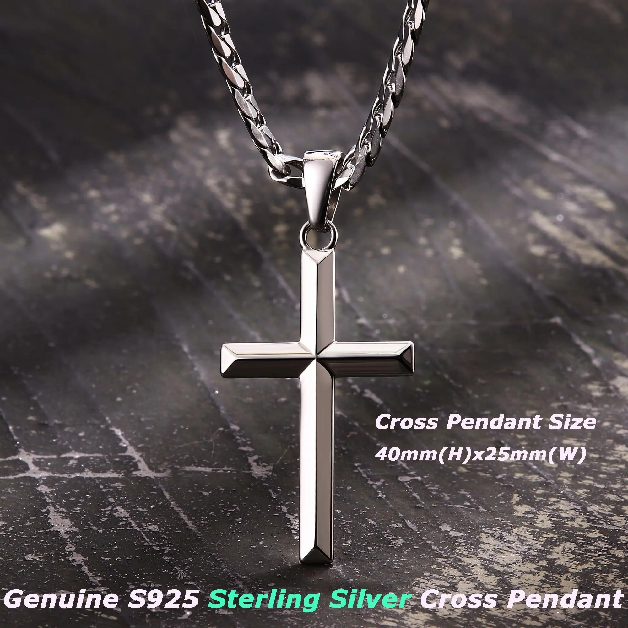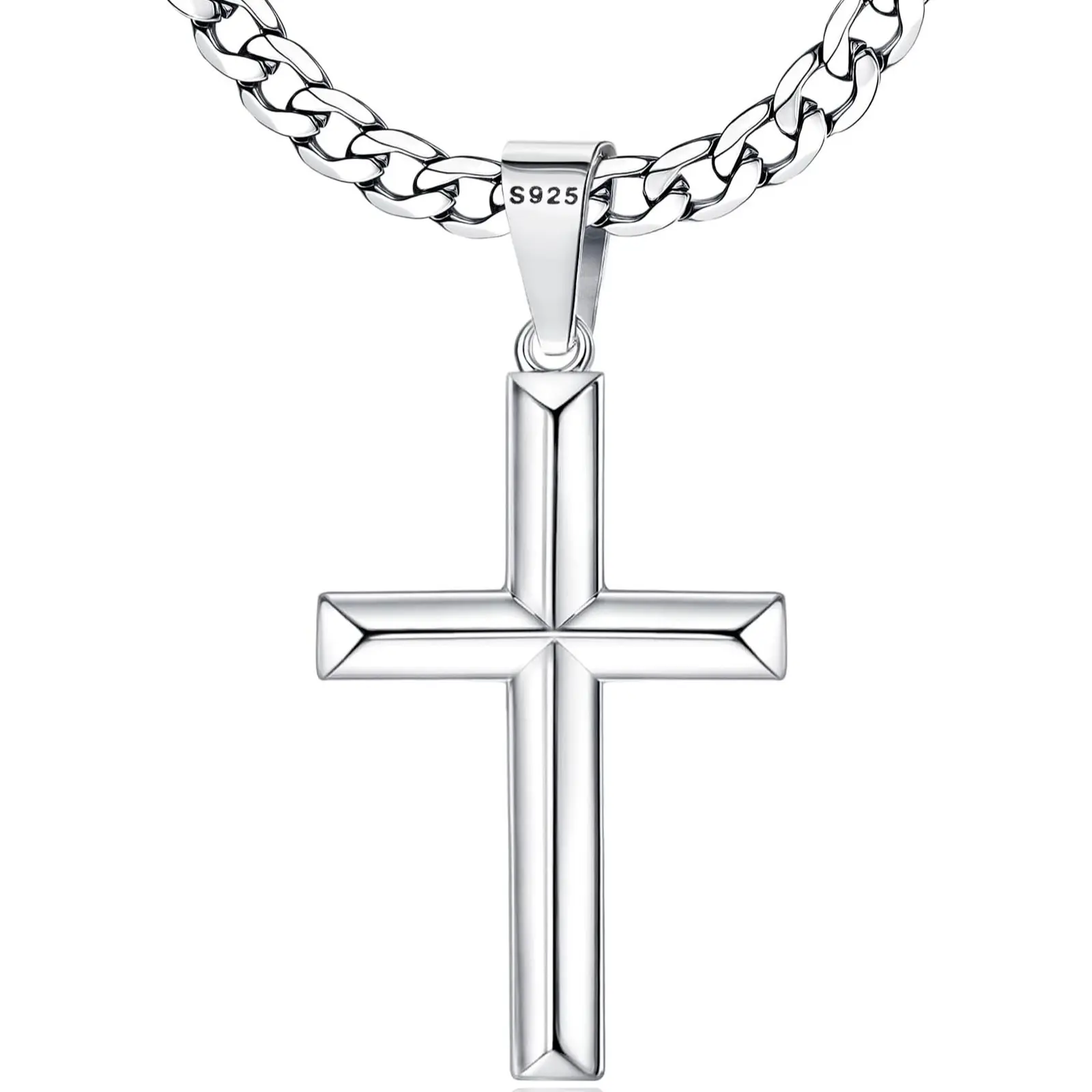 ·Built to Last : You will get a solid s925 sterling silver cross pendant, a durable stainless steel cuban link curb chain, both packaged with exquisite gift box, choose it as your fashion silver men necklace or silver chain for men. This silver cross chain offers durability and shine that lasts making it perfect for everyday wear and special occasions