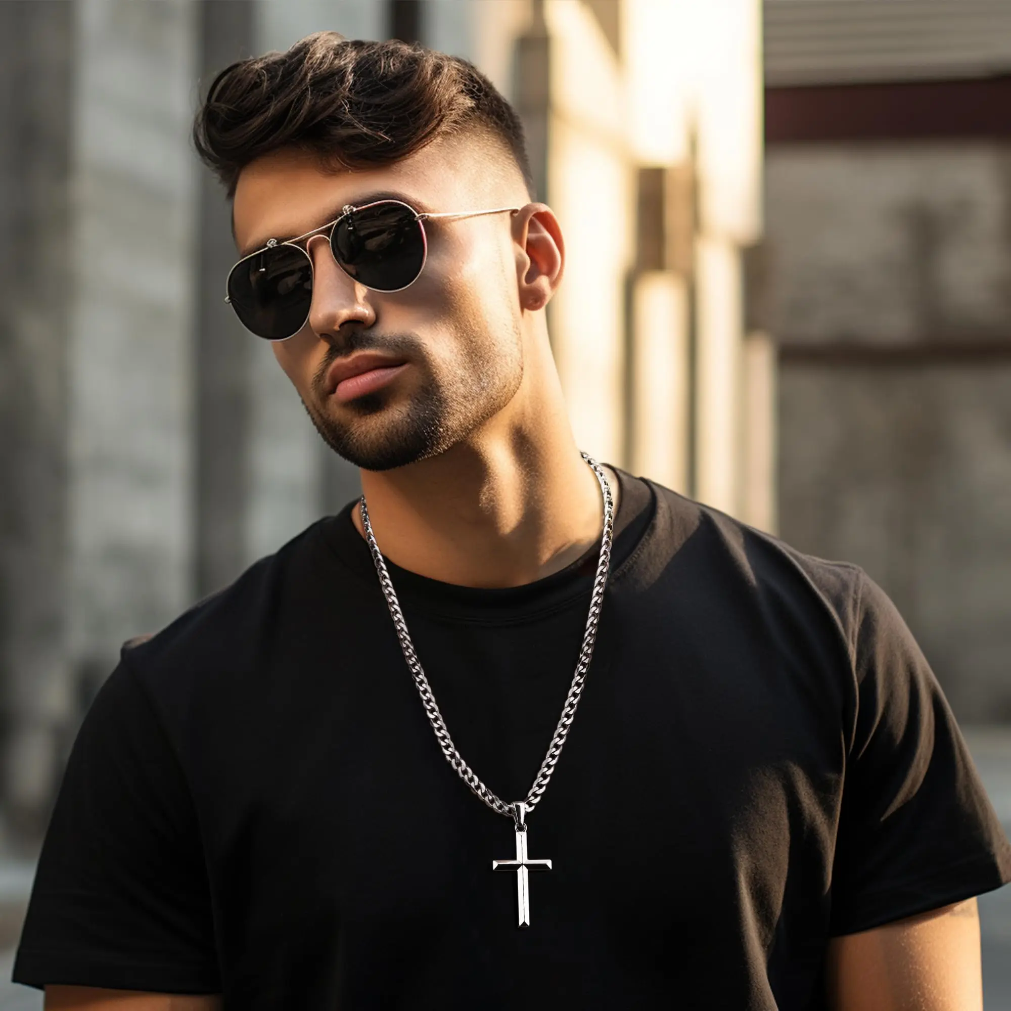 ·316L Stainless Steel Chain : Cuban link curb chain was made of surgical steel, nickel and lead free, hypoallergenic for sensitive skin. It adopts diamond cut craft, polished hand by hand, match well with the cross pendant. Wear alone with casual or formal attire for everyday modern elegance, with your favorite pendant or charm for a personal statement or as a great layering chain. Modern Classic Necklace for Men