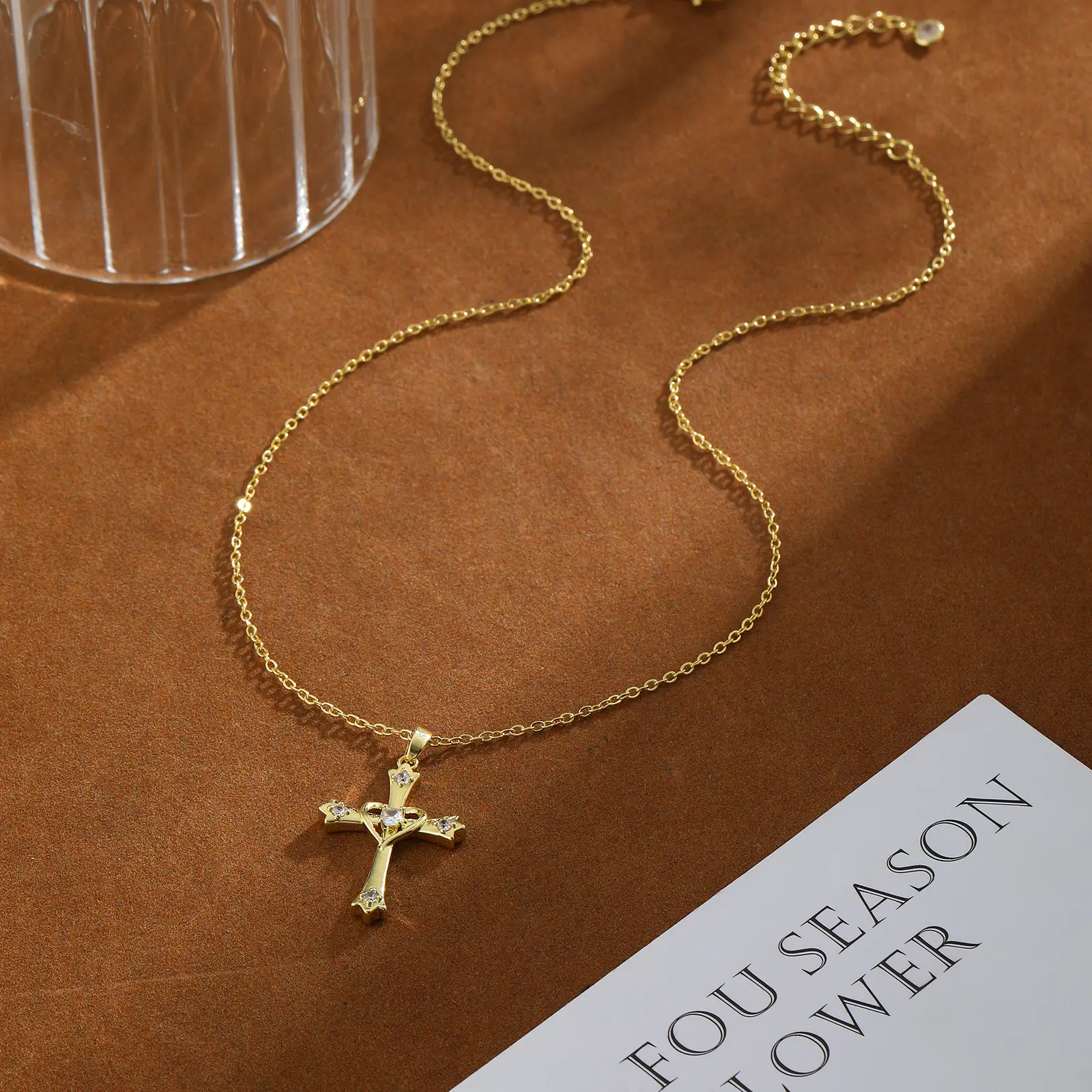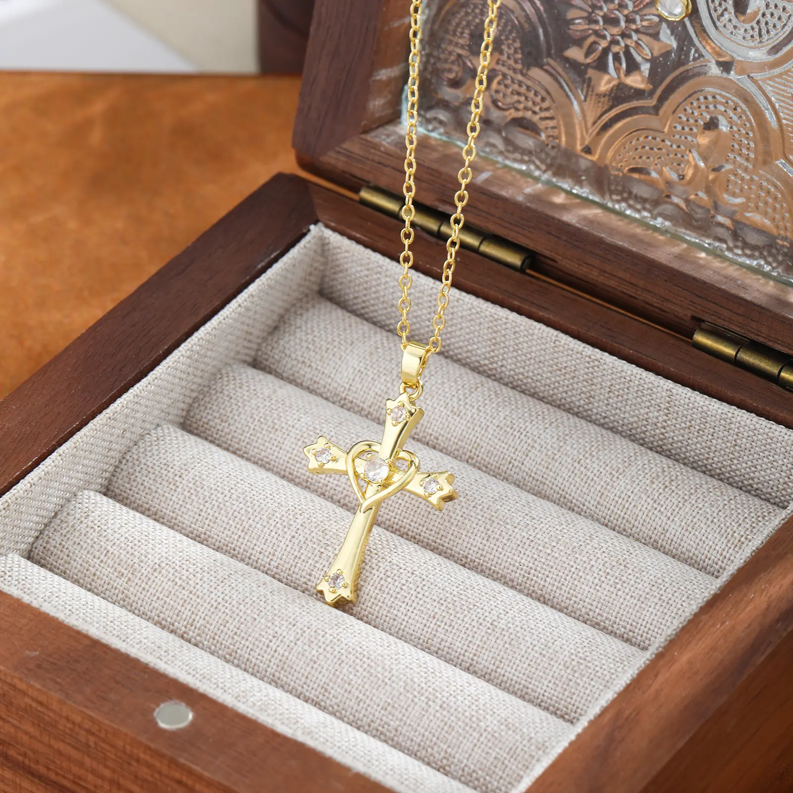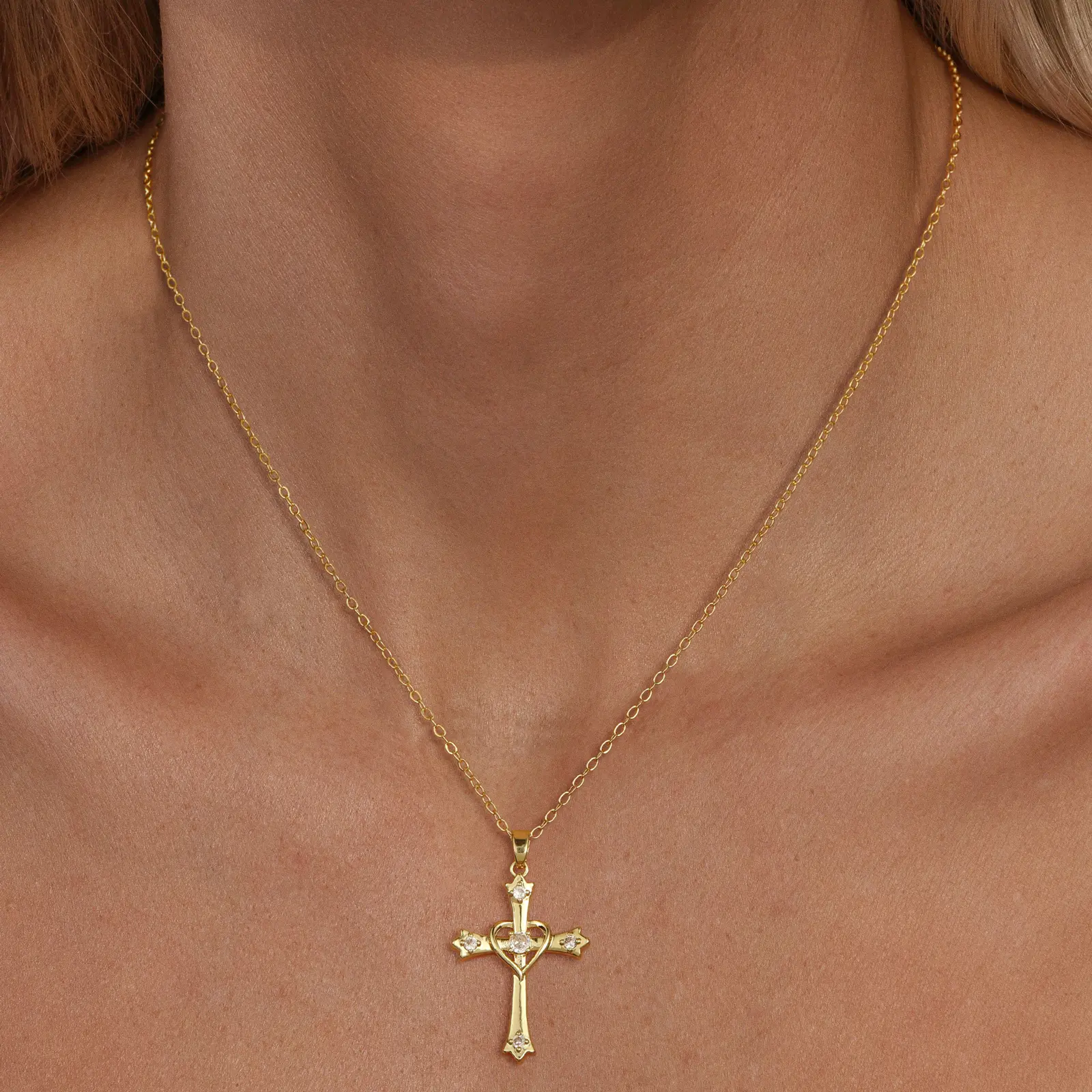 5. VENOCO 14K Dainty Gold Plated Cross Necklace for Women Infinity Heart Jewelry with CZ Cross Faith Pendant Necklaces Jewelry Religious Minimalist Gift