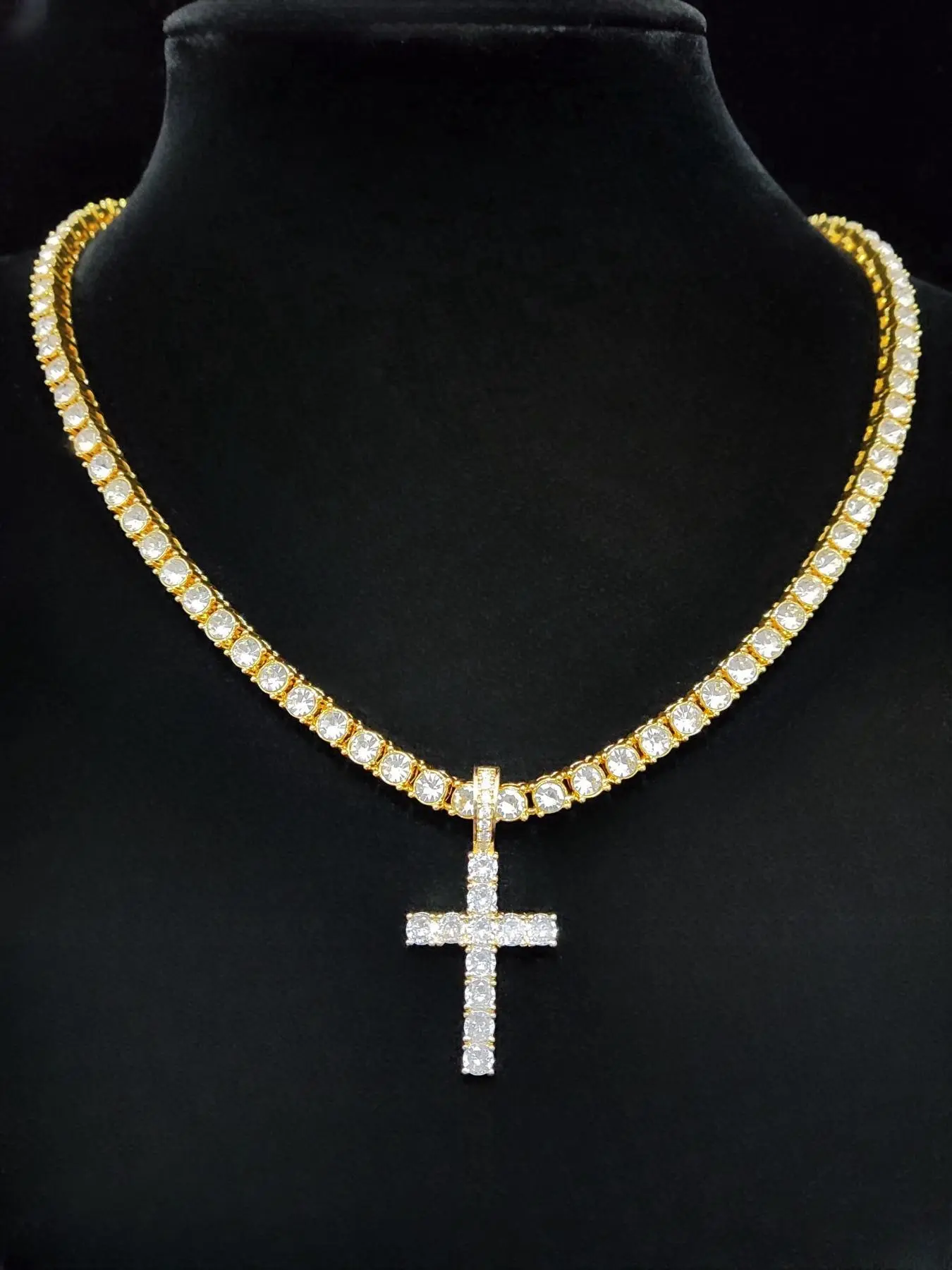 cross necklace with diamond in the middle