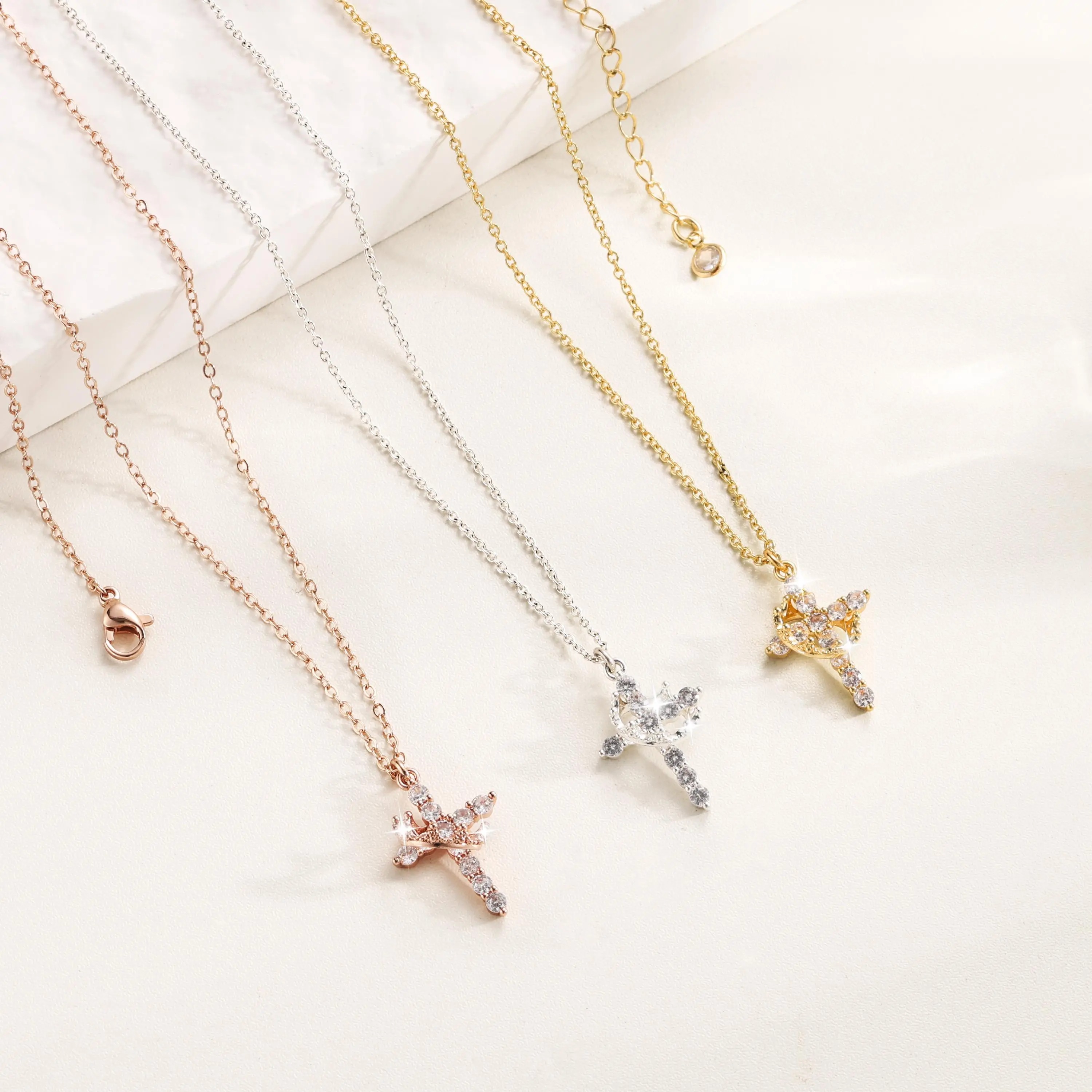Cubic Zirconia Cross Necklace Design: This fashion necklace has a simple design and is easy to wear.